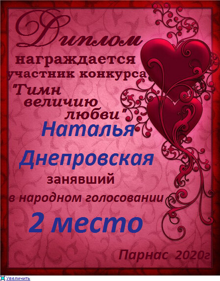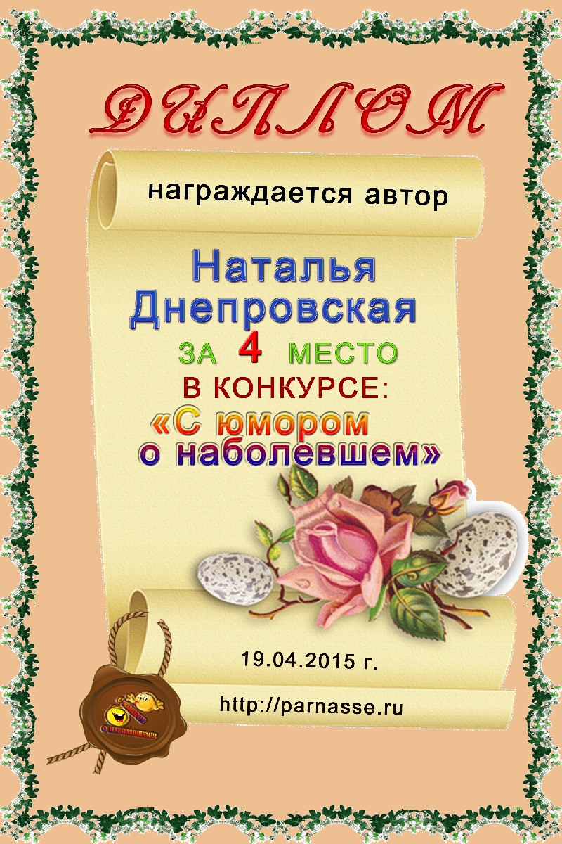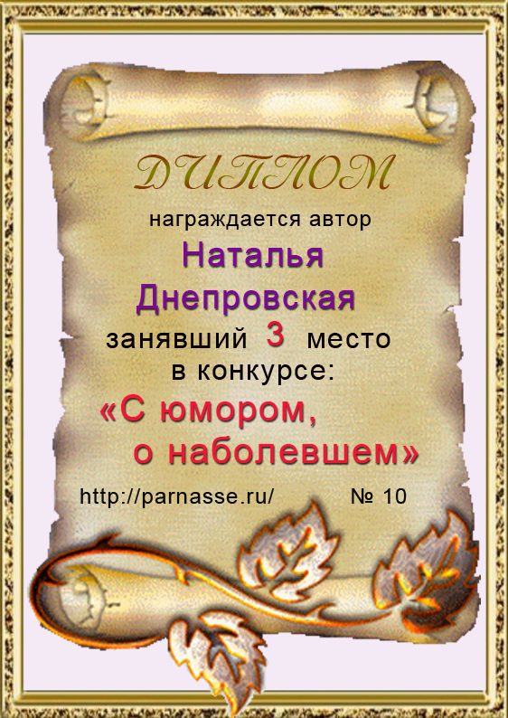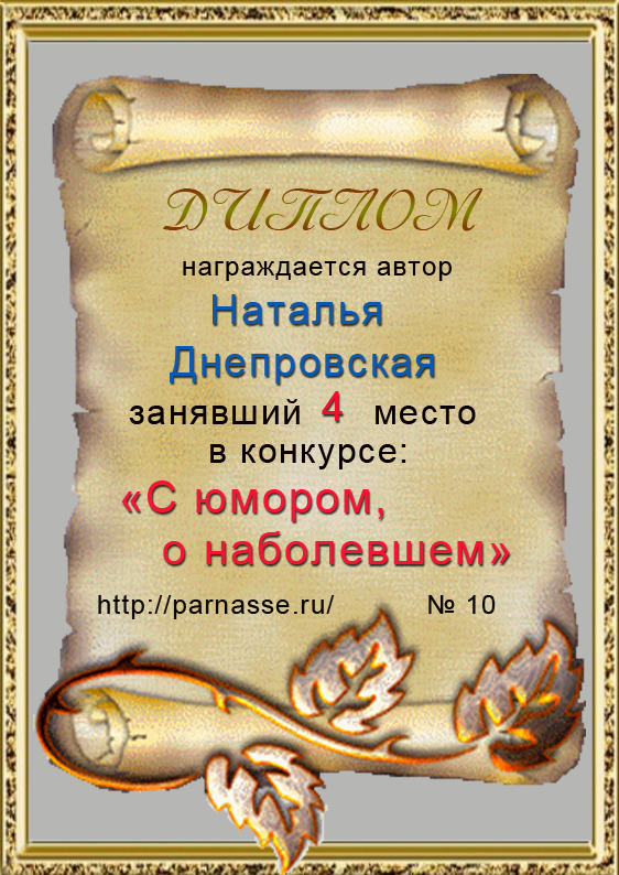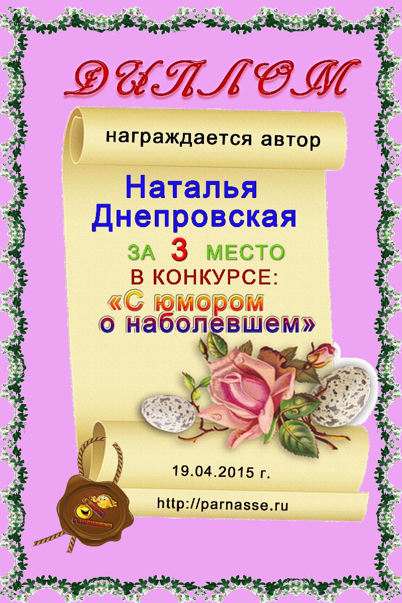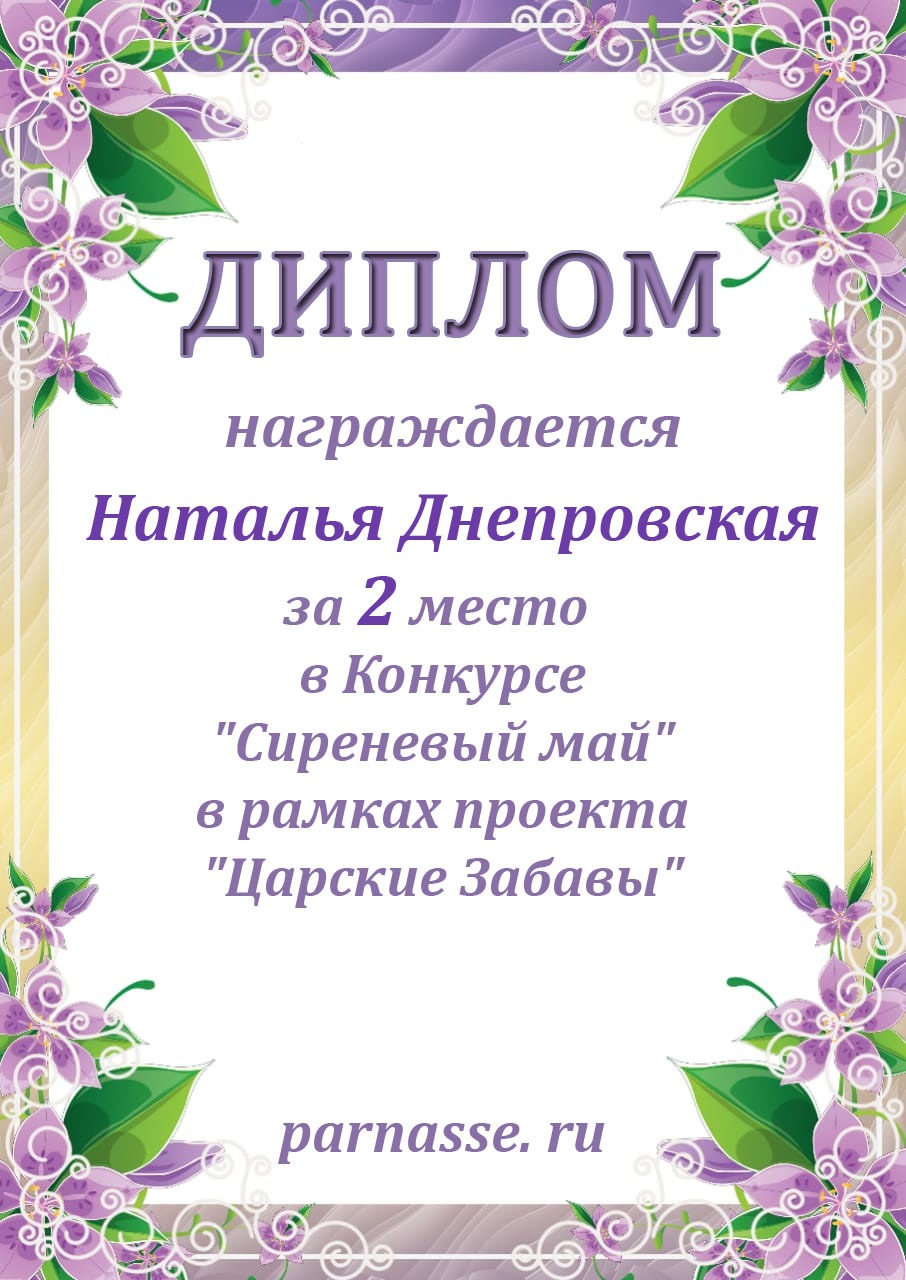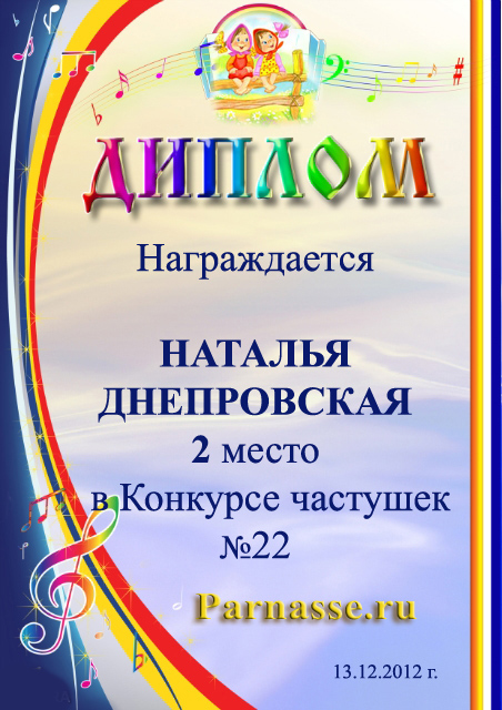 За второе место в конкурсе частушек №8++. Поздравляю, Наталья!)
