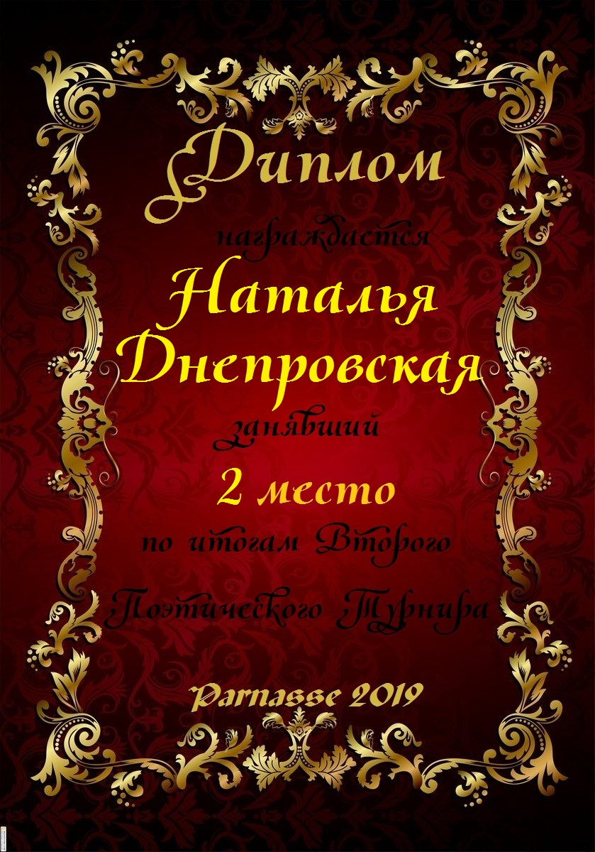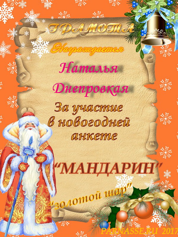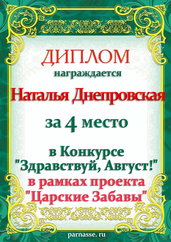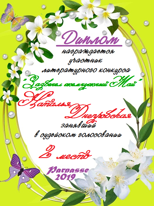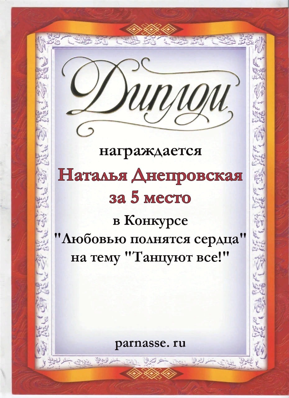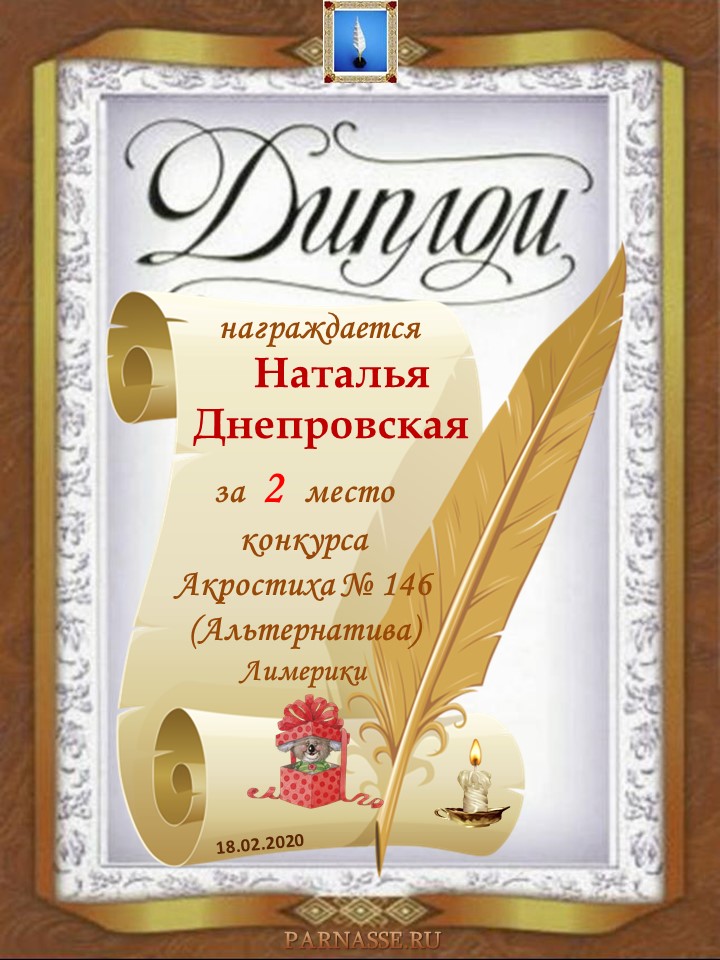 За второе место в конкурсе частушек №8++. Поздравляю, Наталья!)