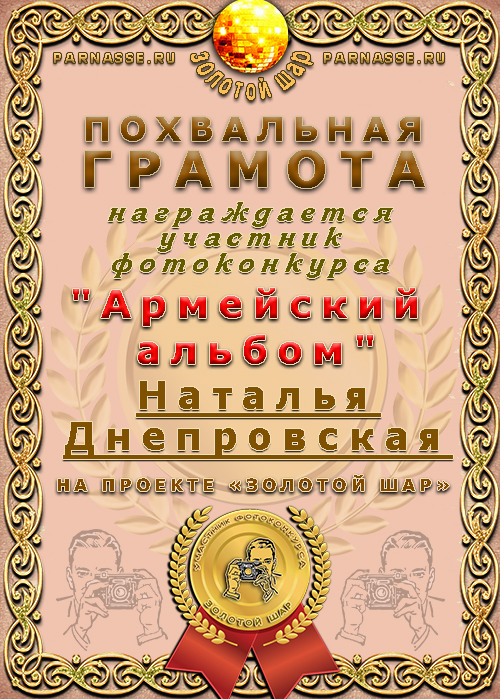 Похвальная грамота за участие в фотоконкурсе "АРМЕЙСКИЙ АЛЬБОМ"
