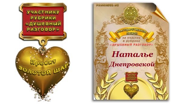 Медаль от ведущей конкурса "Вспоминаем детство" в рамках проекта "Царские Забавы" за искренние, трогательные стихи о детстве.