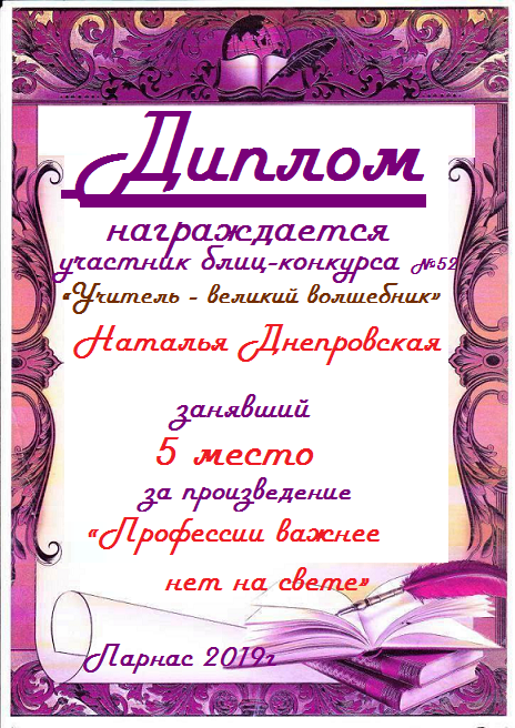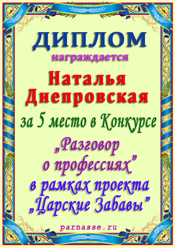 Диплом победителю в конкурсах Акростиха в связи с пятилетием конкурса Акростиха!