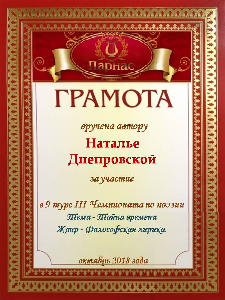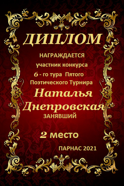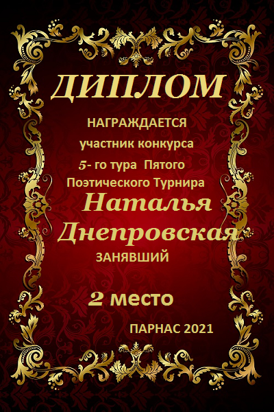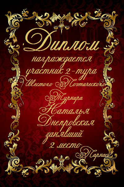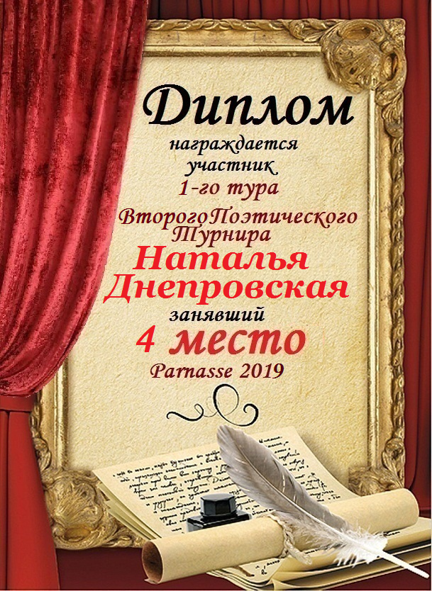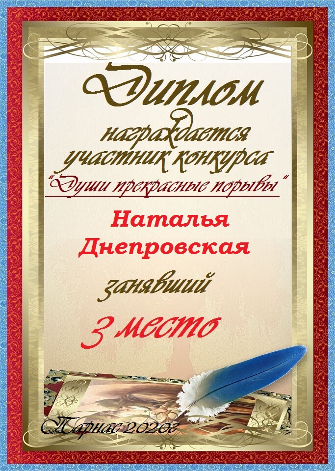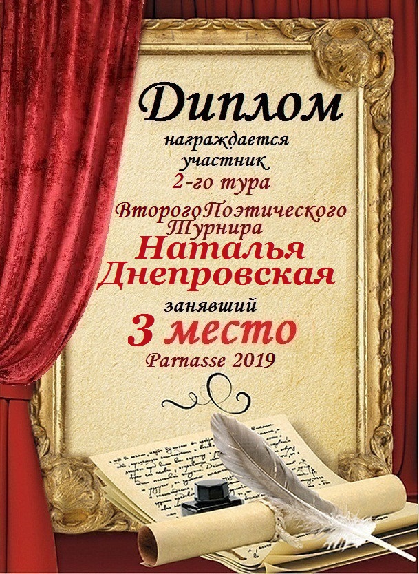Диплом, за 3-е место в конкурсе Авторского стиха №3, посвященного памяти Сергея Есенина от 2 октября 2012года.За стихотворение №32.