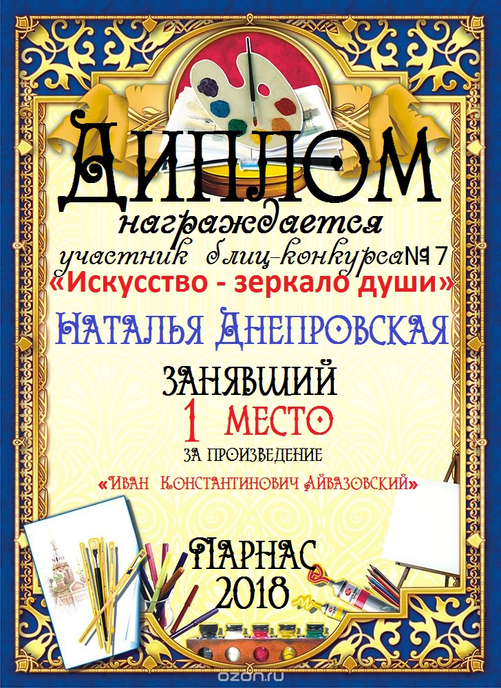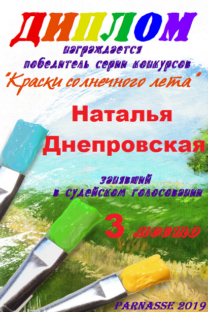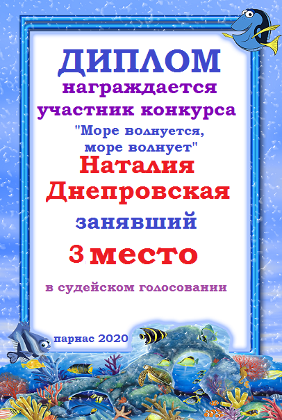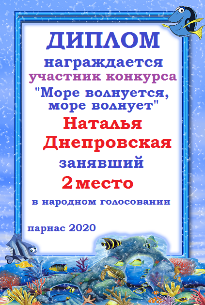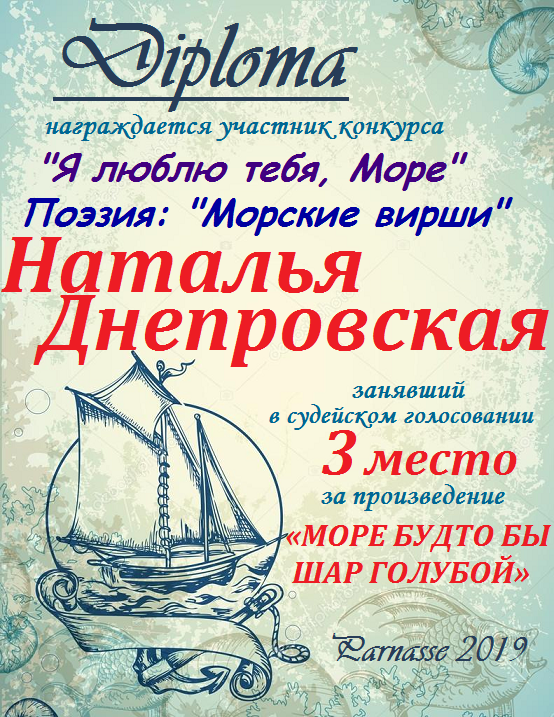 Наталья, поздравляем с занятым 3 местом в номинации Стихи о море "О, море-море, ты красиво!" - народное голосование! Желаем новых творческих побед!