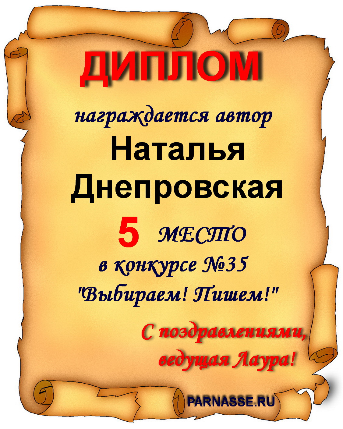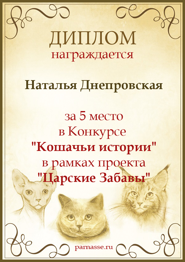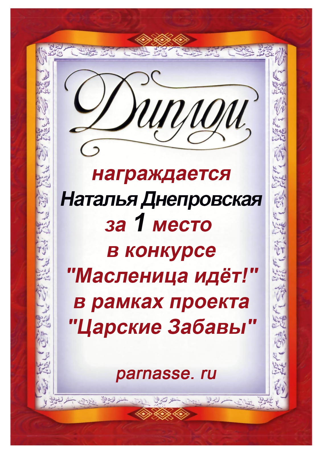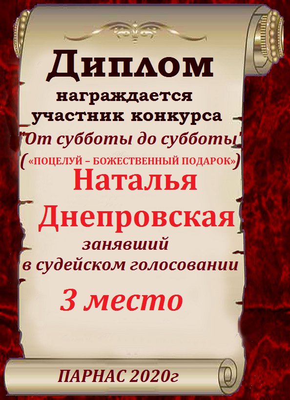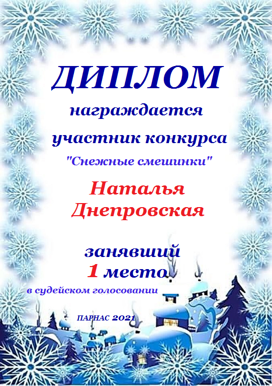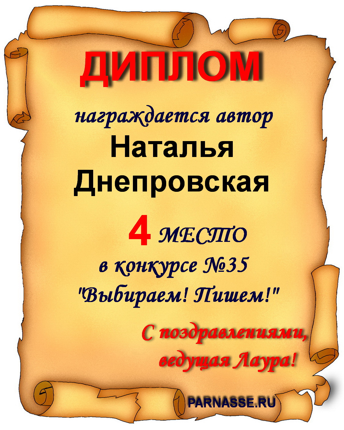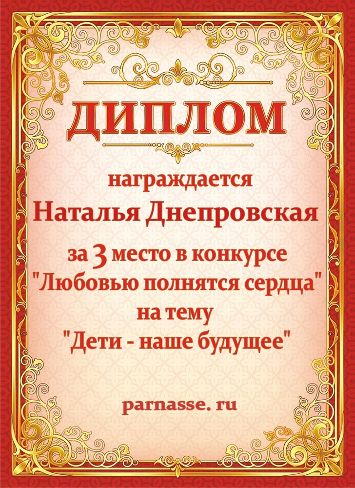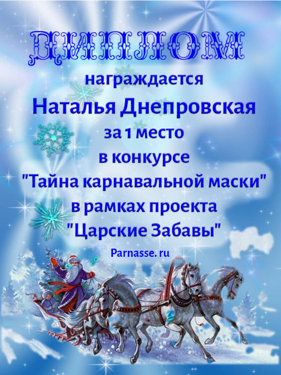 Диплом за 1 место в праздничном конкурсе "Поздравим Парнас с трёхлетием вместе!"
