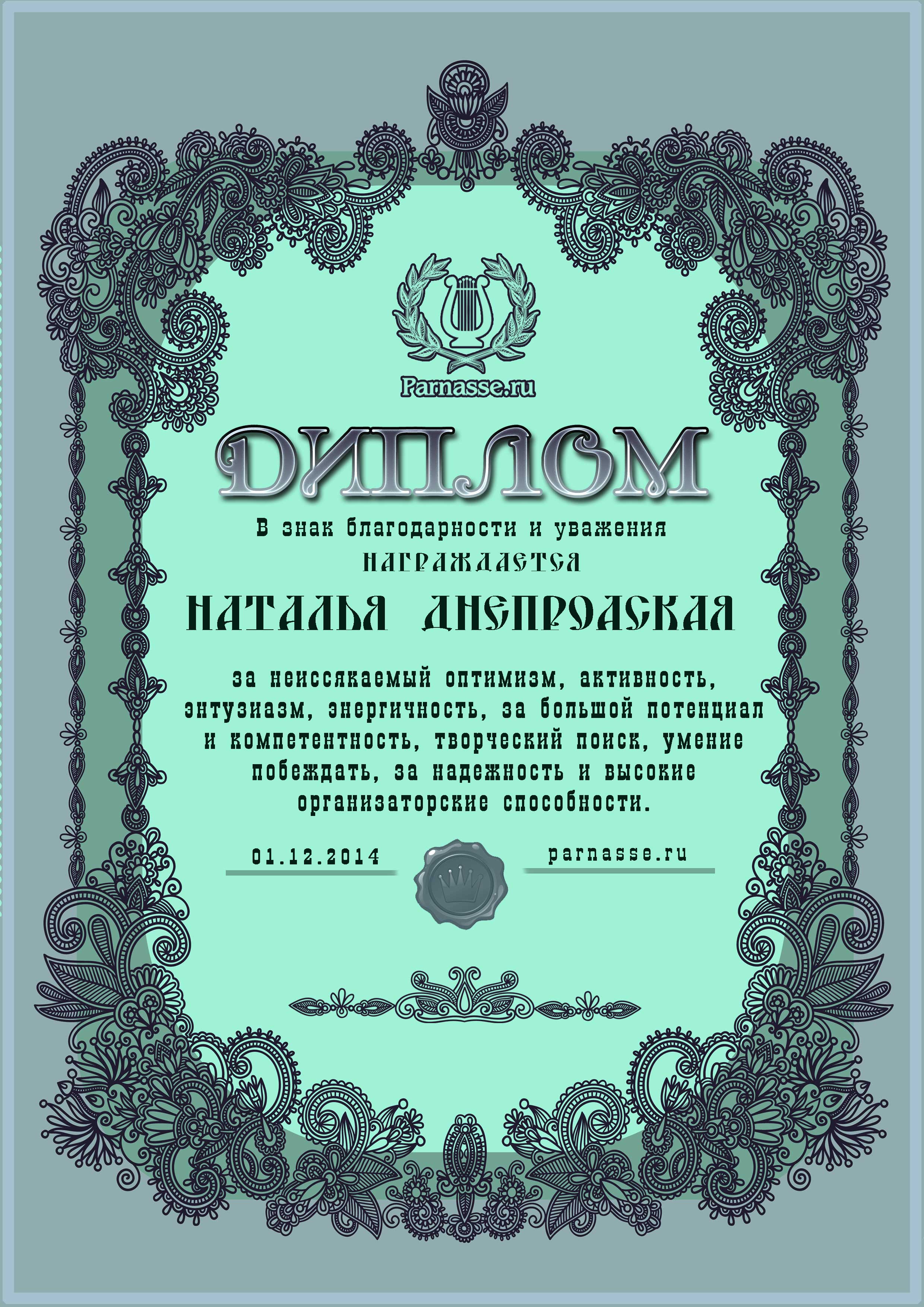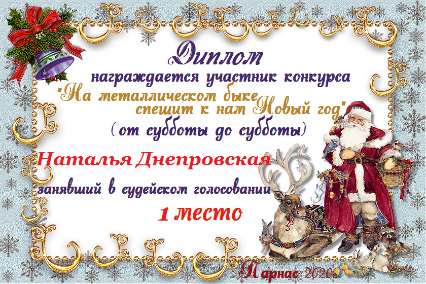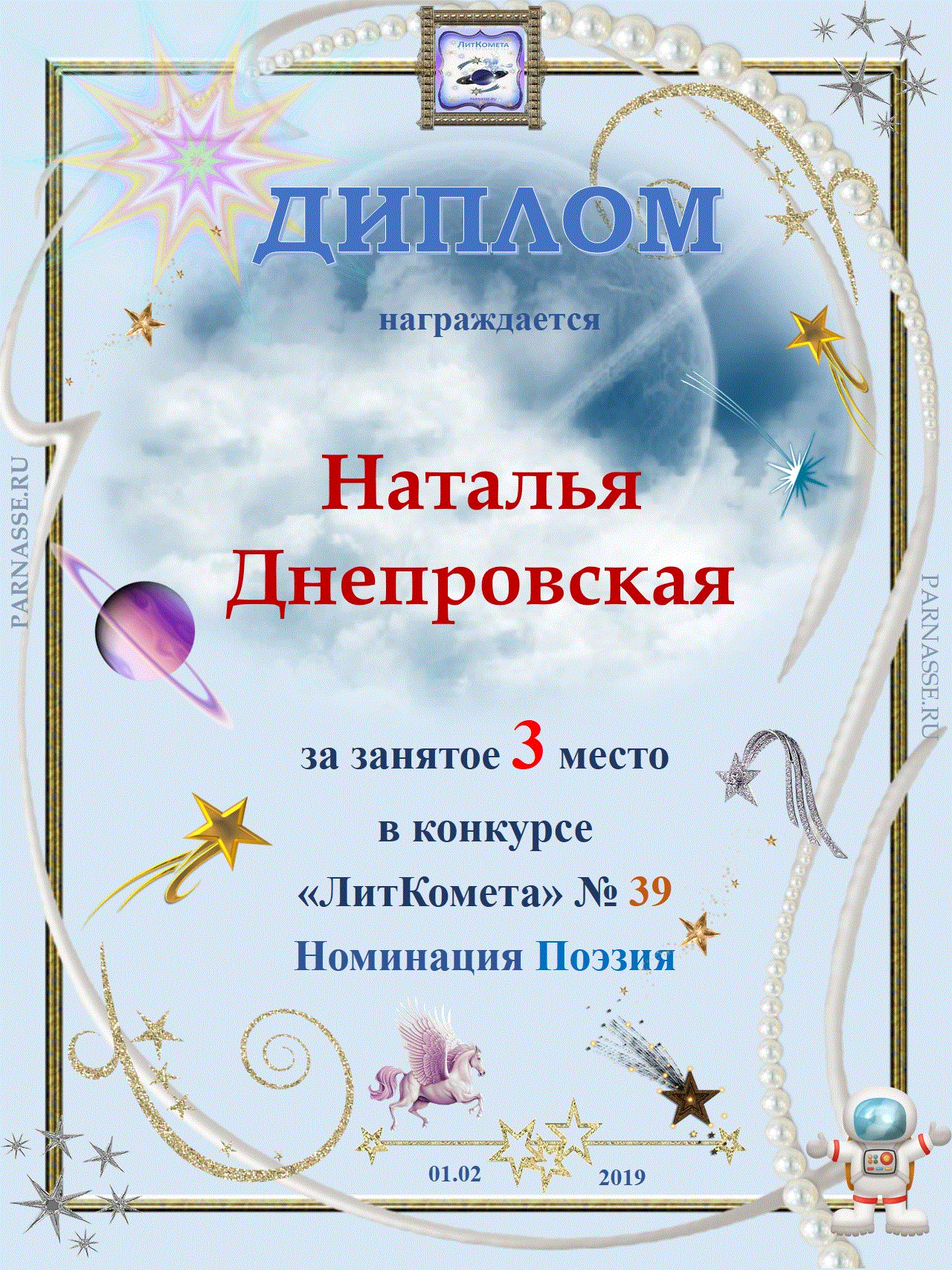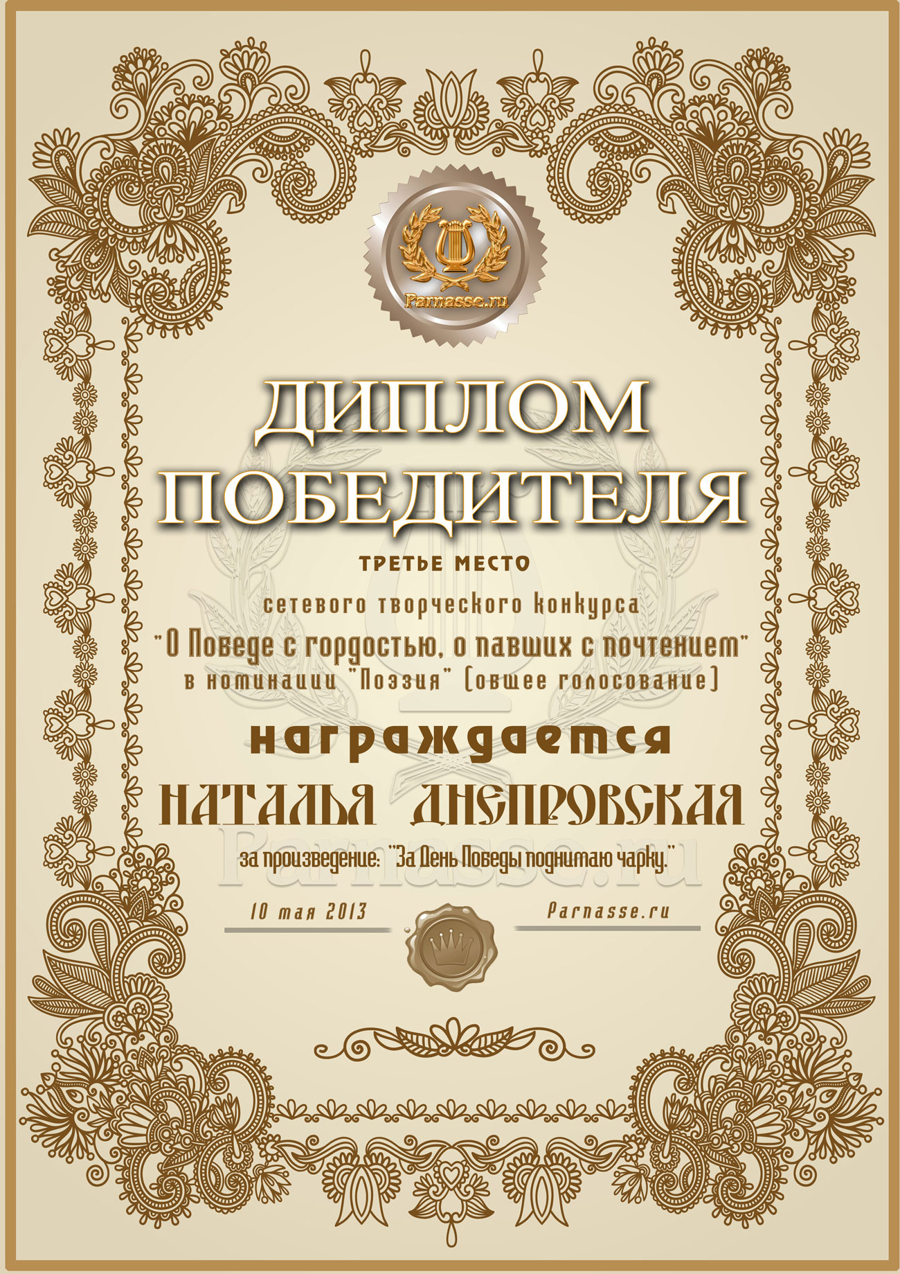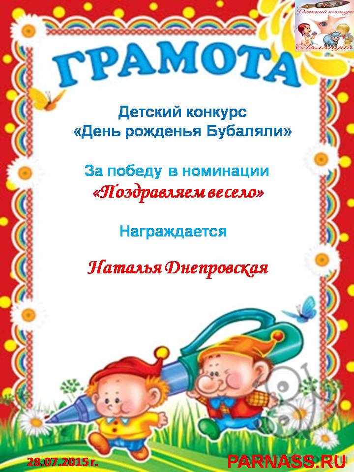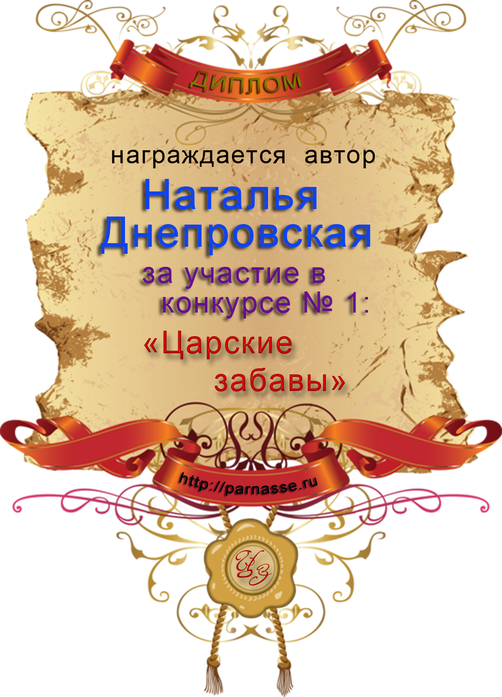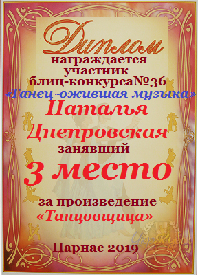 Диплом за 1 место в праздничном конкурсе "Поздравим Парнас с трёхлетием вместе!"