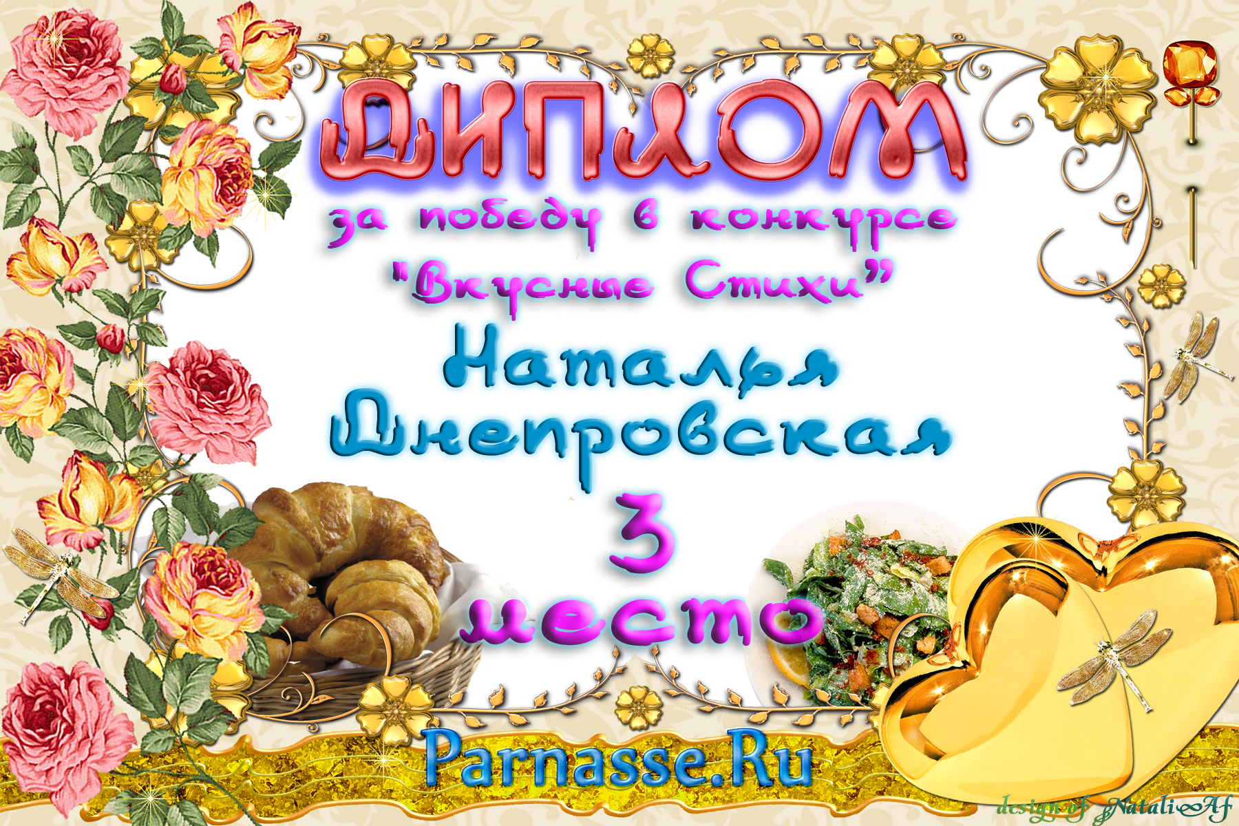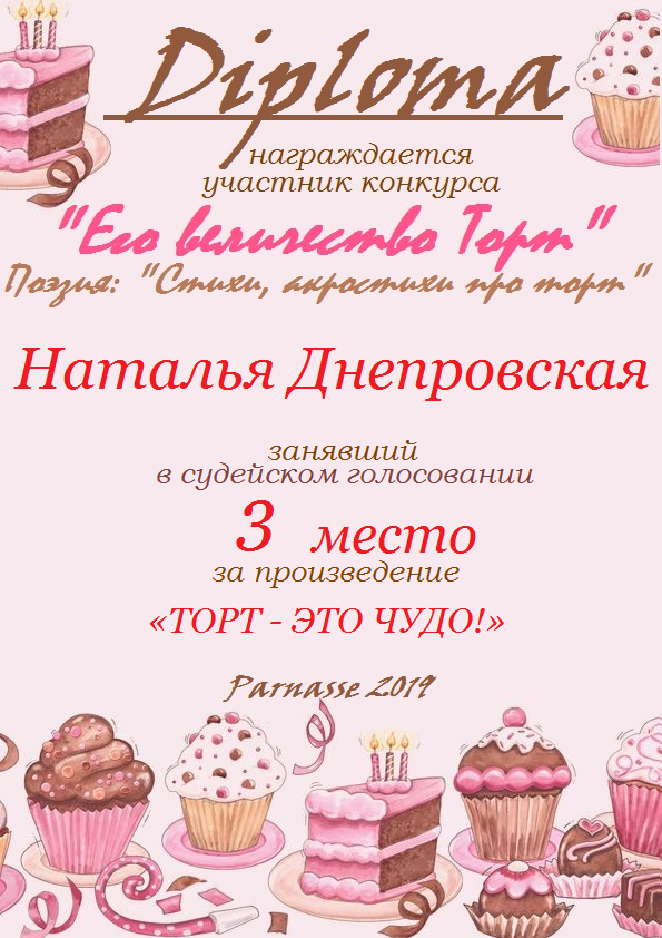 От всего сердца поздравляем Вас с блестящей ПОБЕДОЙ в номинации «Вкусная ПОЭЗИЯ», во "Вкусном конкурсе"