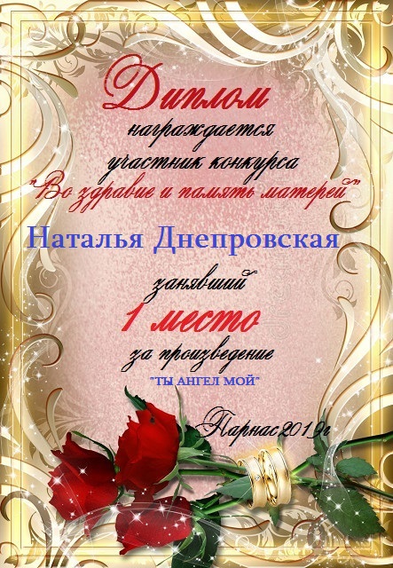 ДИПЛОМ ЗА ВТОРОЕ МЕСТО В КОНКУРСЕ "РАССКАЖИ О МАМЕ" Поэзия