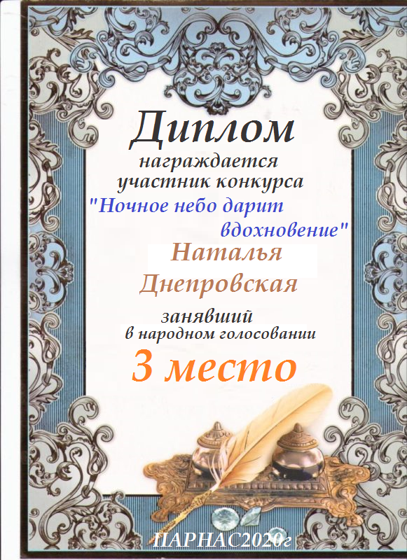 Второе место в судейском голосовании по итогам конкурса «О чём ночами шепчут звёзды»