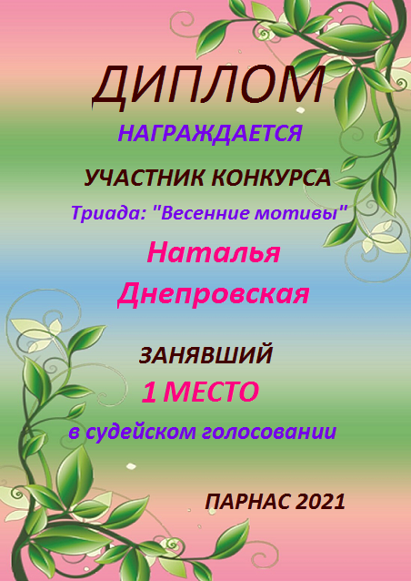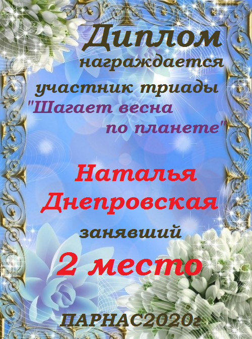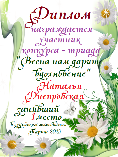 Второе место в судейском голосовании по итогам первого конкурса - триады "Весна нам дарит вдохновение"