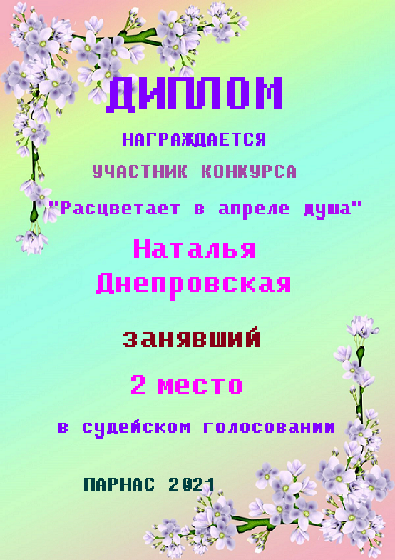 Первое место в судейском голосовании по итогам конкурса " Весна нам дарит вдохновение"