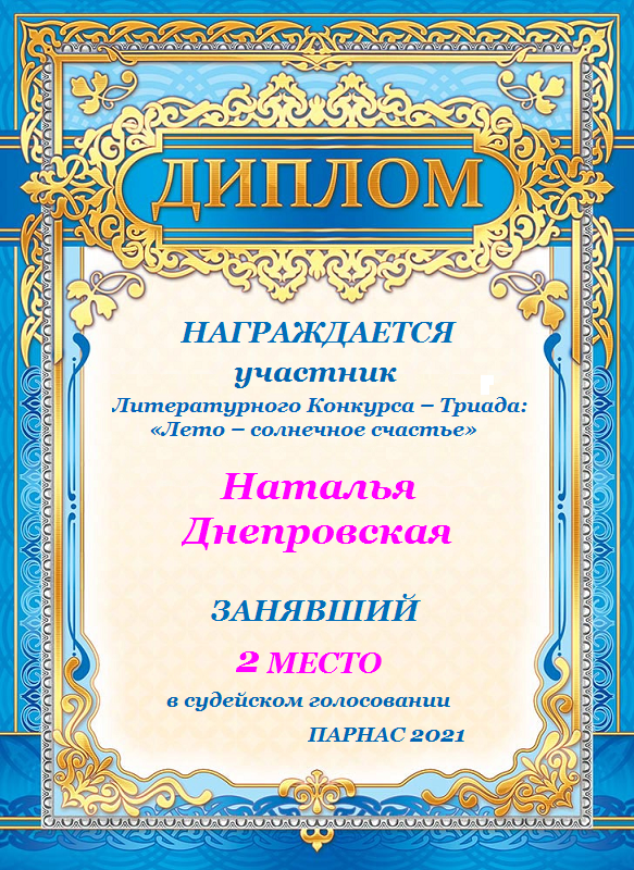 Второе место в судейском голосовании по итогам третьего конкурса - триада "Здравствуй яркое лето"