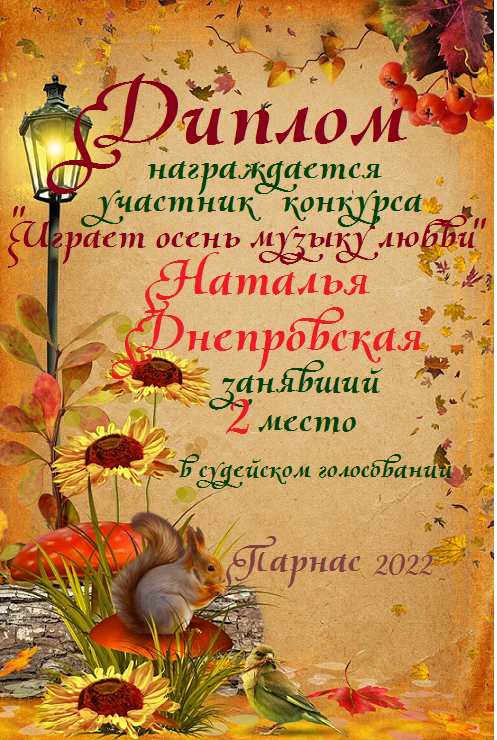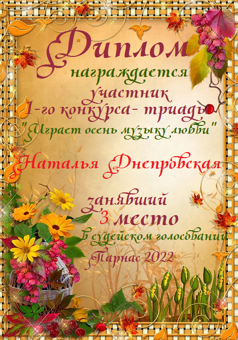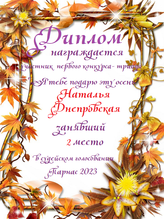 Первое место в судейском голосовании по итогам второго конкурса - триады "Играет осень музыку любви"