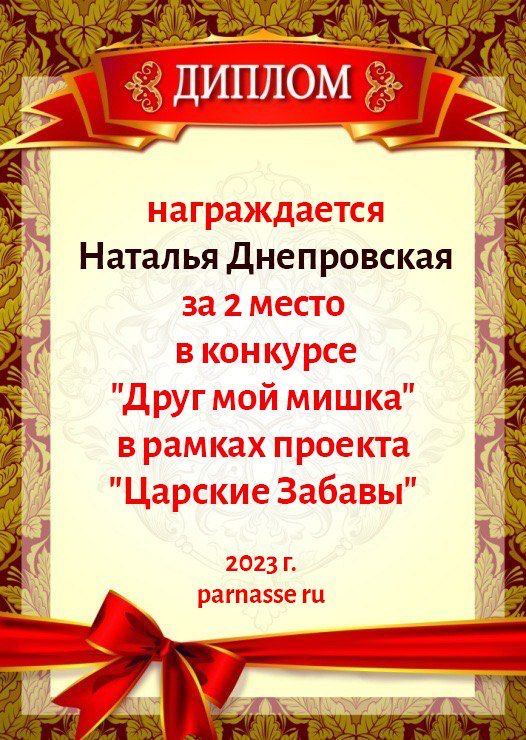 2 место в конкурсе "Друг мой мишка" в рамках проекта "Царские Забавы". Поздравляем!