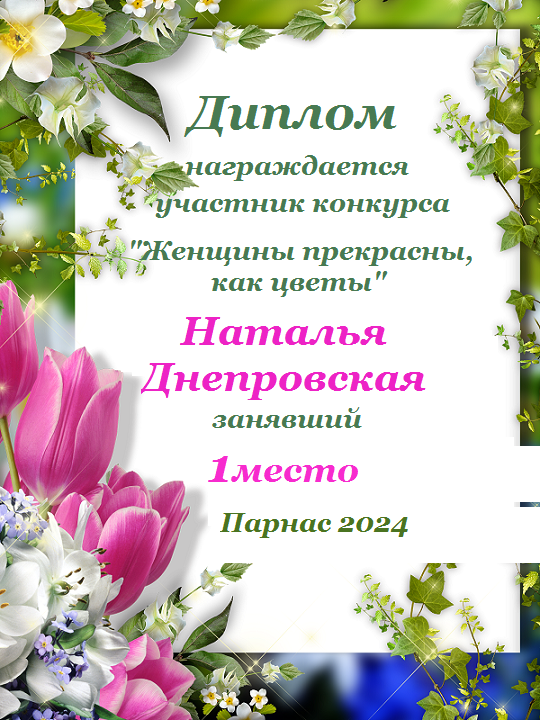 Первое место по решению Администрации и Главного судьи конкурса "Женщины прекрасны, как цветы"