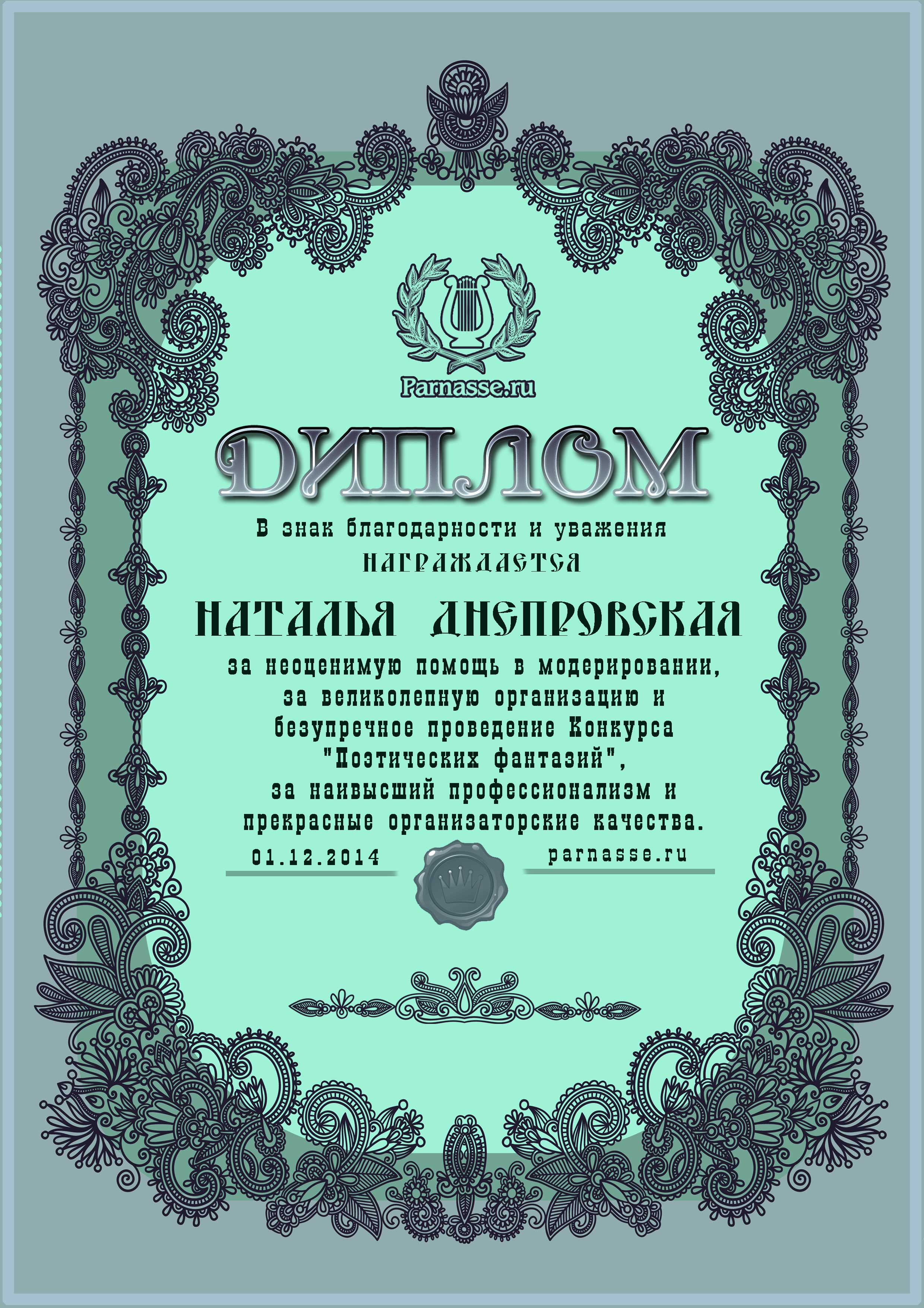 Номинация "Лучшее стихотворное поздравление Парнасу".Уважаемая Наталья!