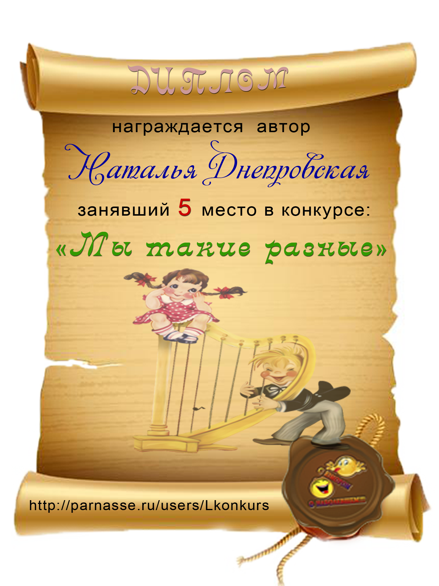 Диплом за 5 место в конкурсе "С юмором. о наболевшем! № 5.
