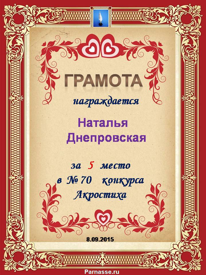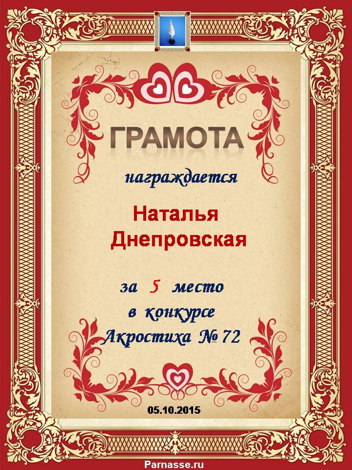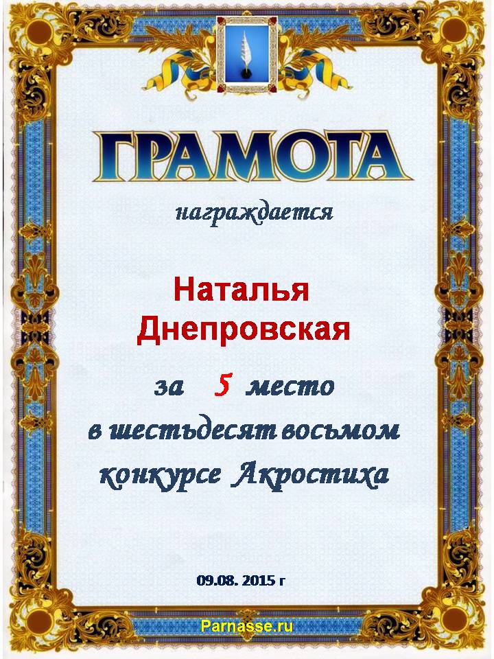 Грамота за 5 место в 97 конкурсе АКРОСТИХА (Альтернатива)! ПОЗДРАВЛЯЮ!