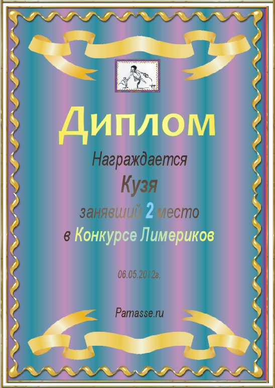 Диплом за 2 место в конкурсе лимериков №10 (06.05.2012.)