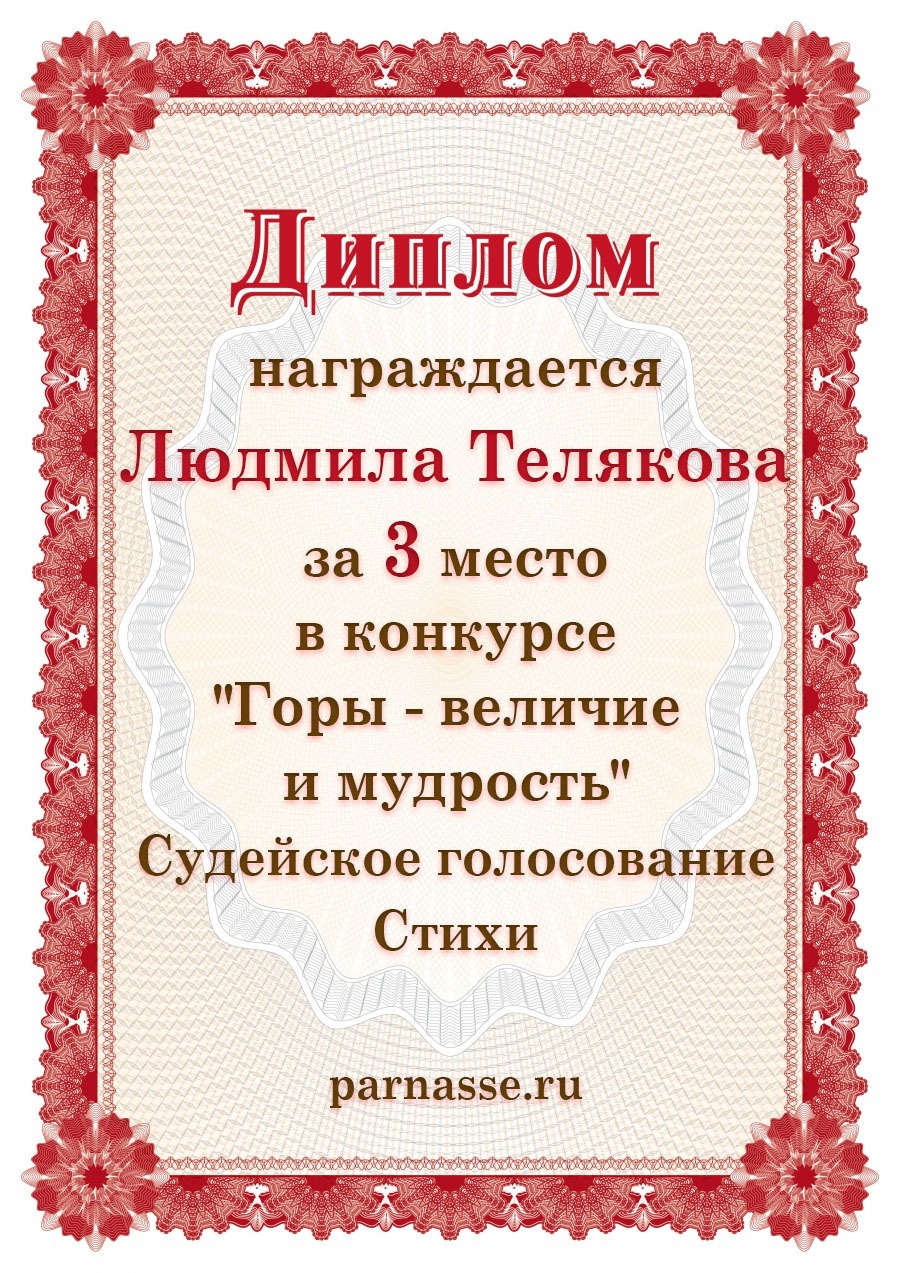 За 3место в конкурсе "Горы - величие и мудрость". Судейское голосование. Стихи