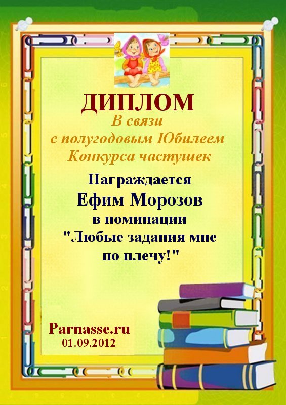 Похвальная грамота за участие в конкурсе лимериков № 20 (17.09.2012 г.)