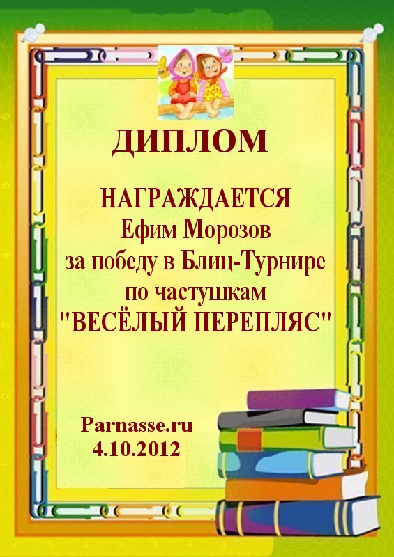 ДИПЛОМ за победу в БЛИЦ-ТУРНИРЕ по частушкам
