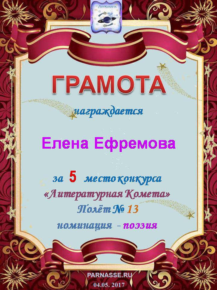 Грамота за 5 место "ЛитКомета" Полёт № 13 - поэзия
