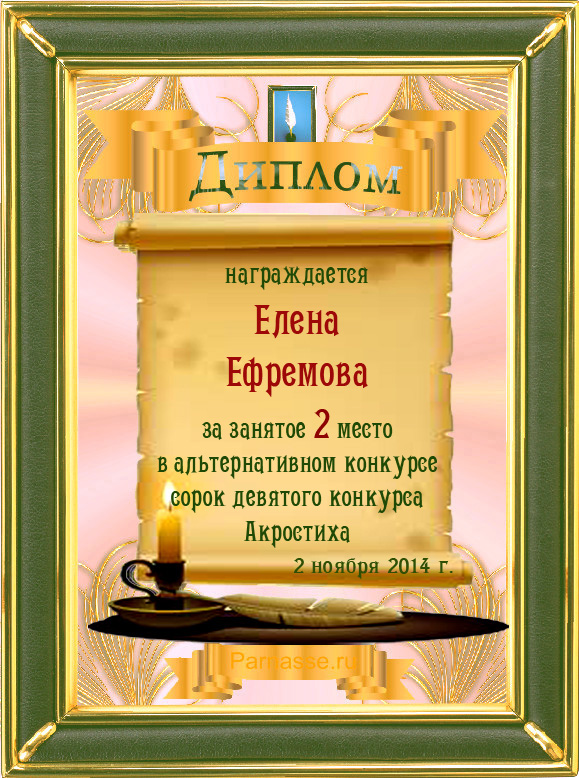 Диплом за 2 место во 2 годовом конкурсе Акростиха по итогам судейского голосования (Альтернатива)! ПОЗДРАВЛЯЮ!
