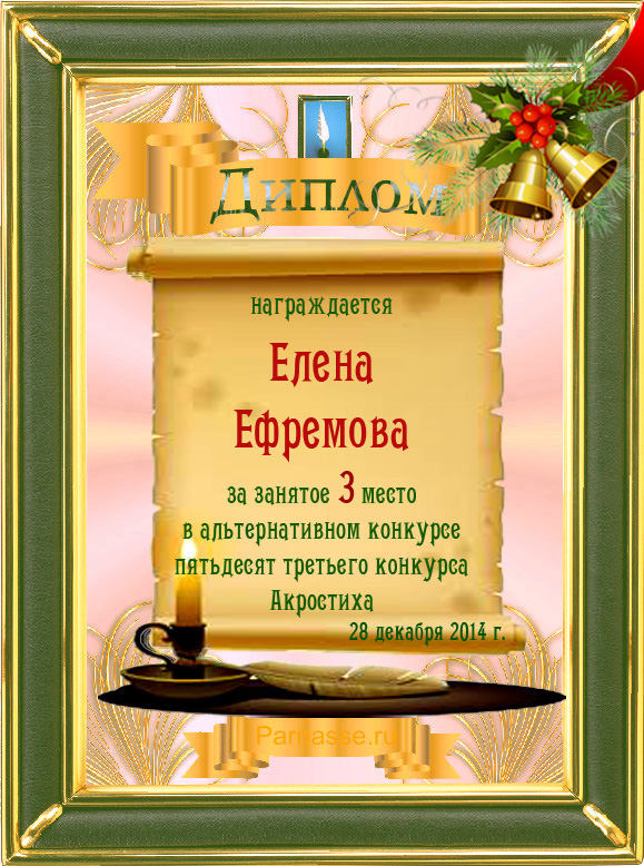 Диплом за 3 место во 2 годовом Альтернативном итоговом конкурсе АКРОСТИХА! ПОЗДРАВЛЯЮ!
