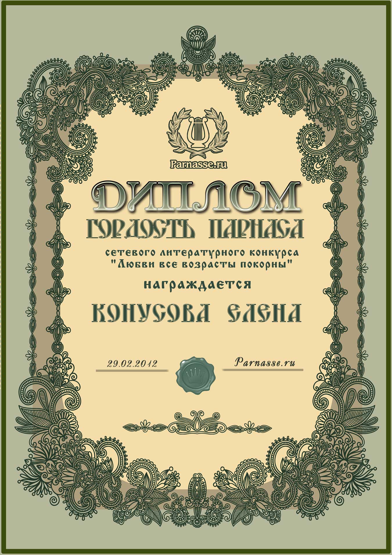 За профессиональное судейство литературного конкурса "Любви все возрасты покорны"