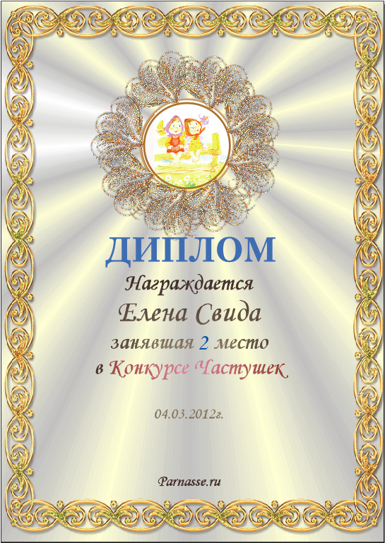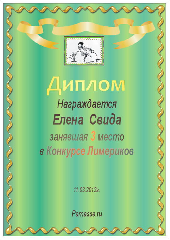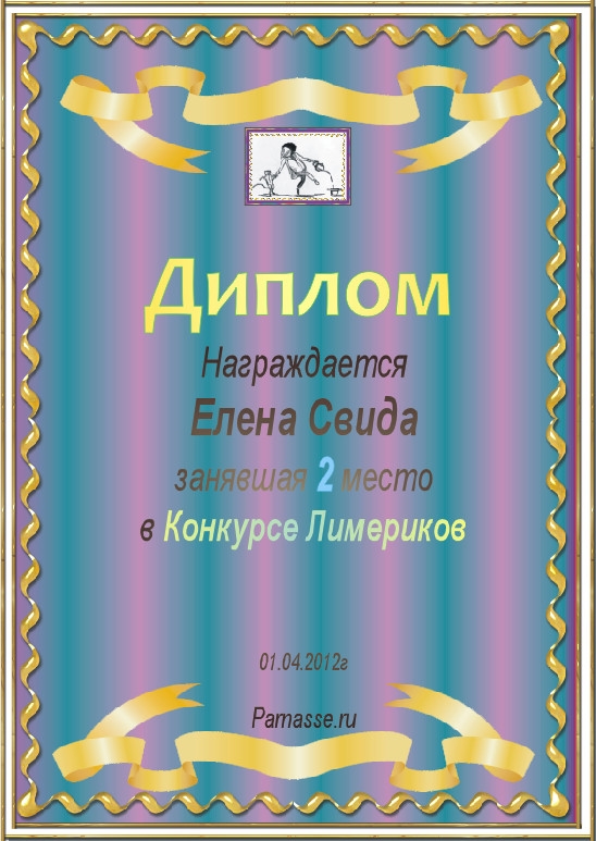 Диплом за 2 место в конкурсе лимериков №8. (22.04.2012.)