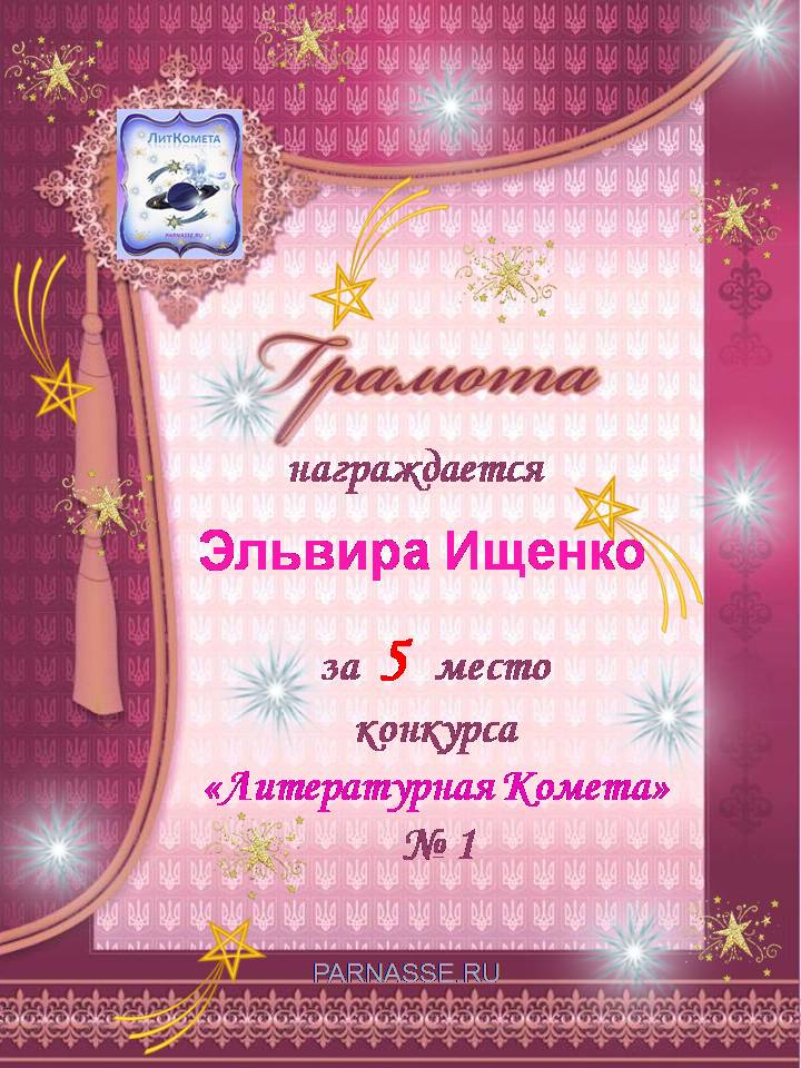 Грамота за 5 место "ЛитКомета" Полёт № 13 - поэзия