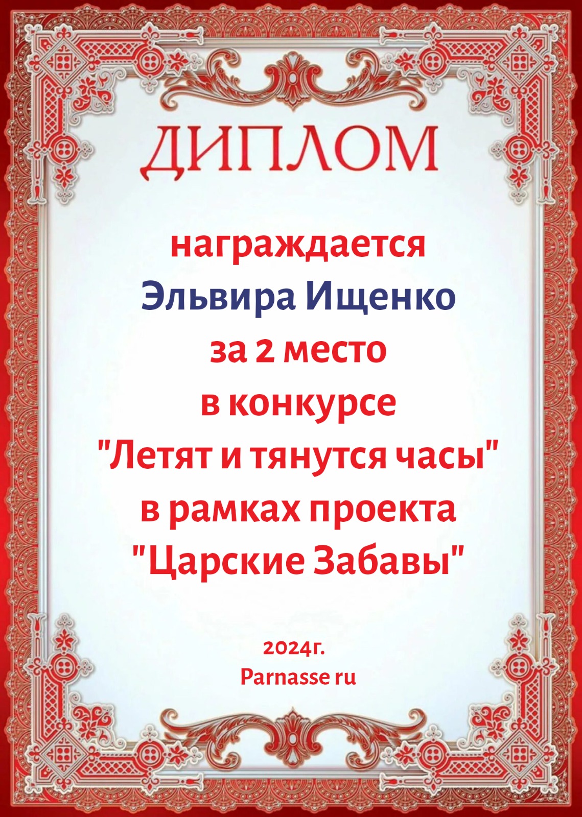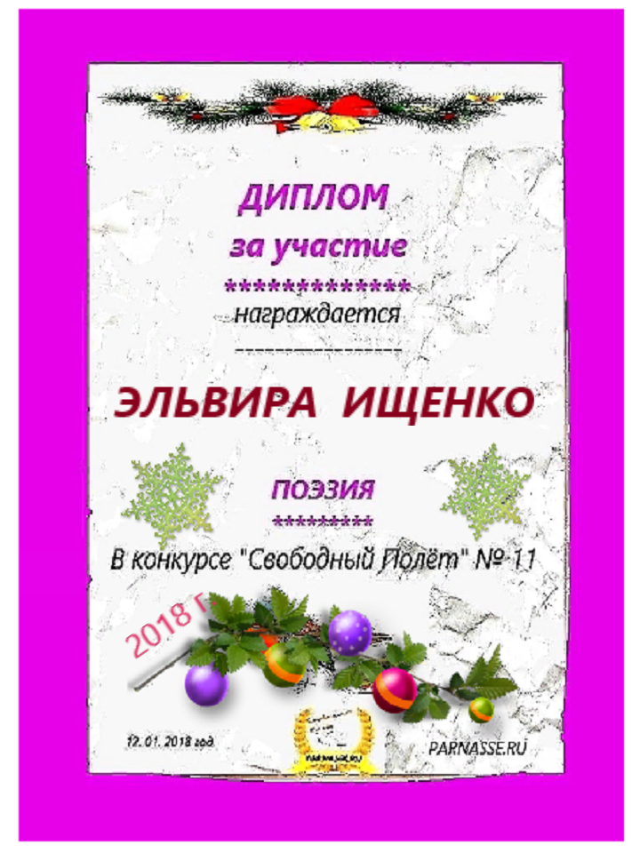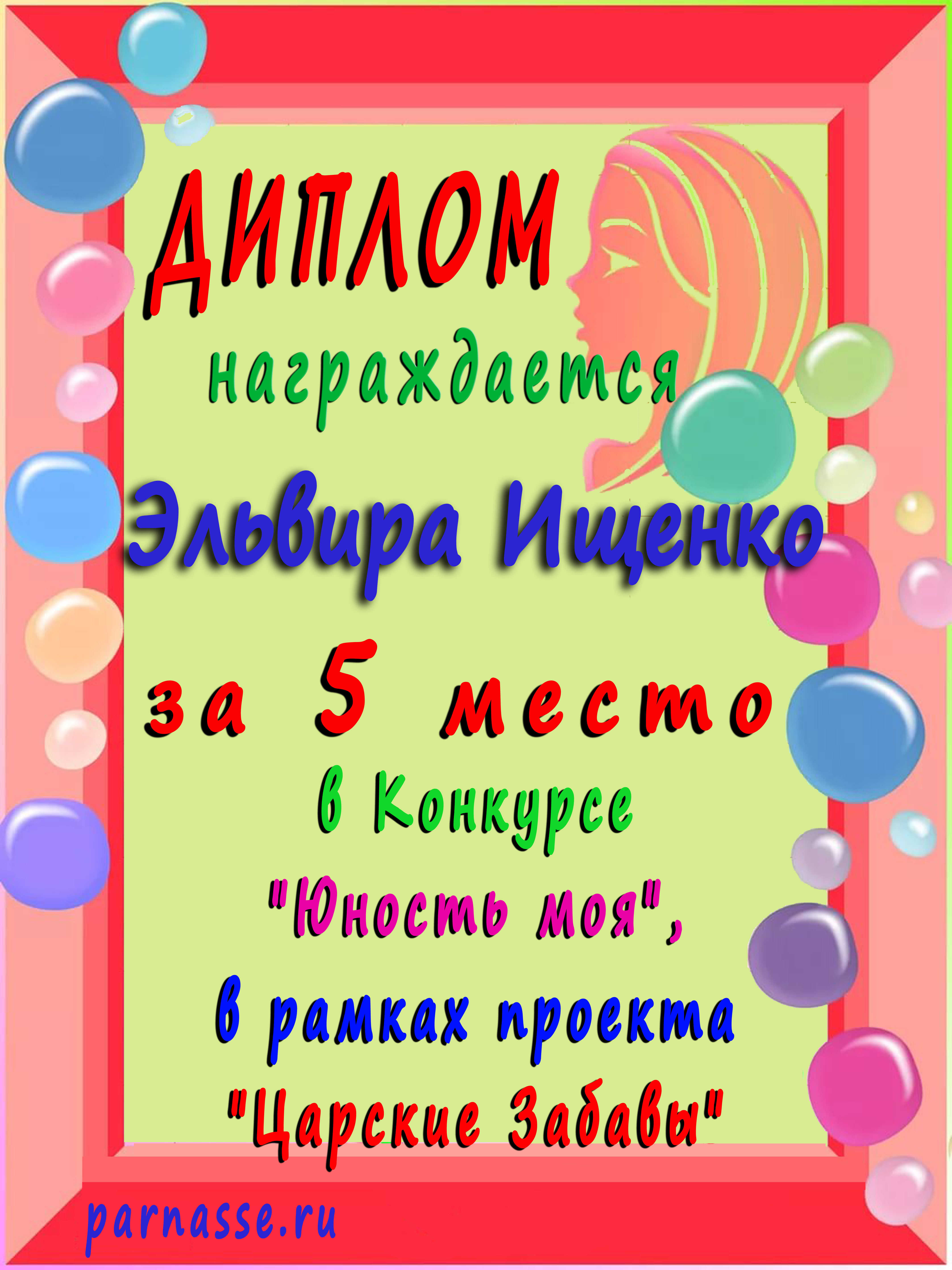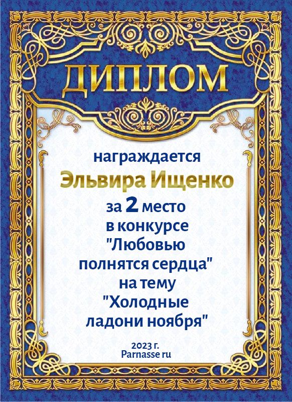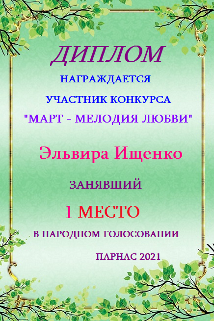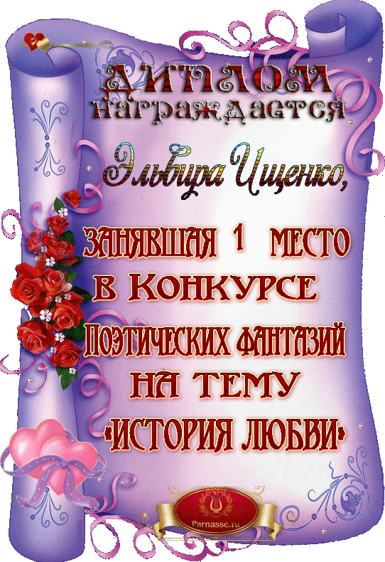 За неугасающую и неисчерпаемую творческую активность, постоянный контакт с Музой и признание сообществом "Парнасцев".От всей души желаем Вам, Эльвира, здоровья, любви, успехов, благополучия, удачи и творческого вдохновения!