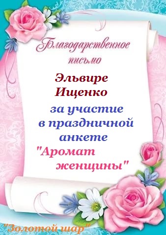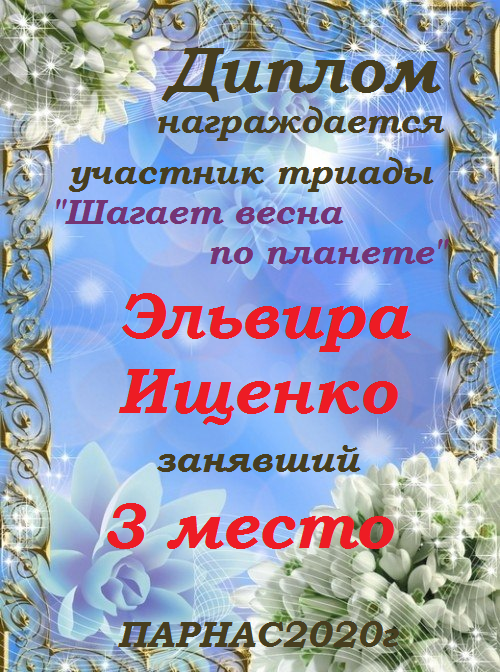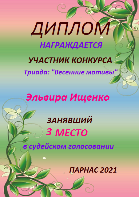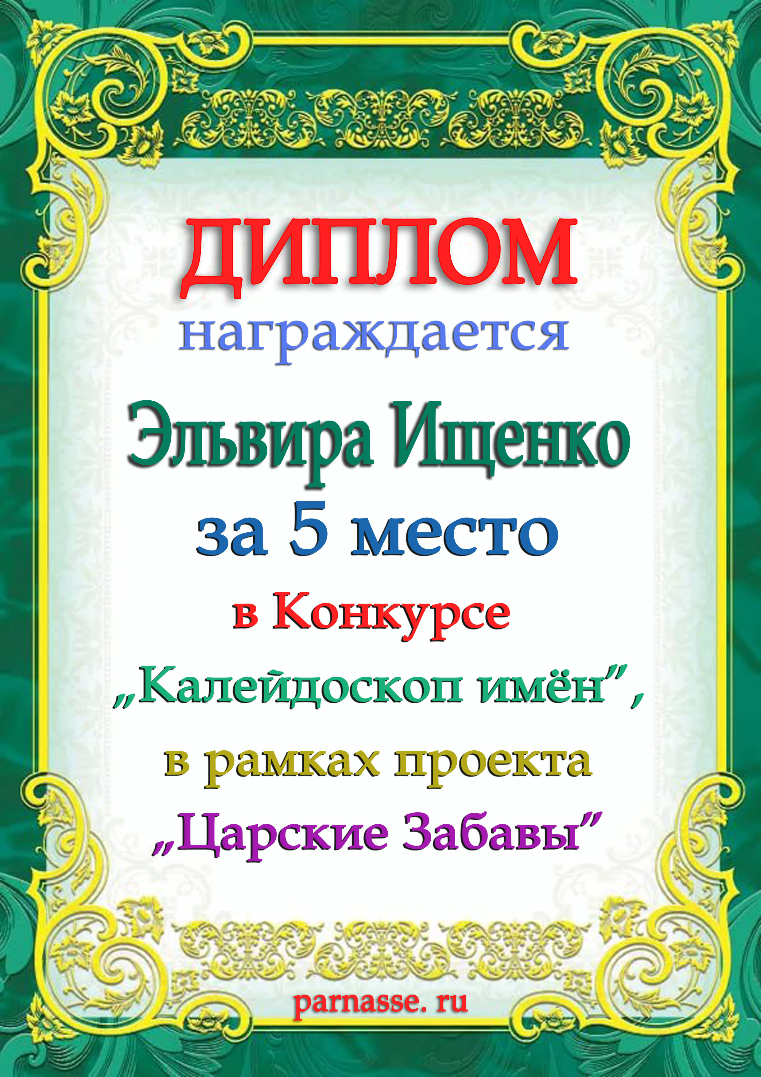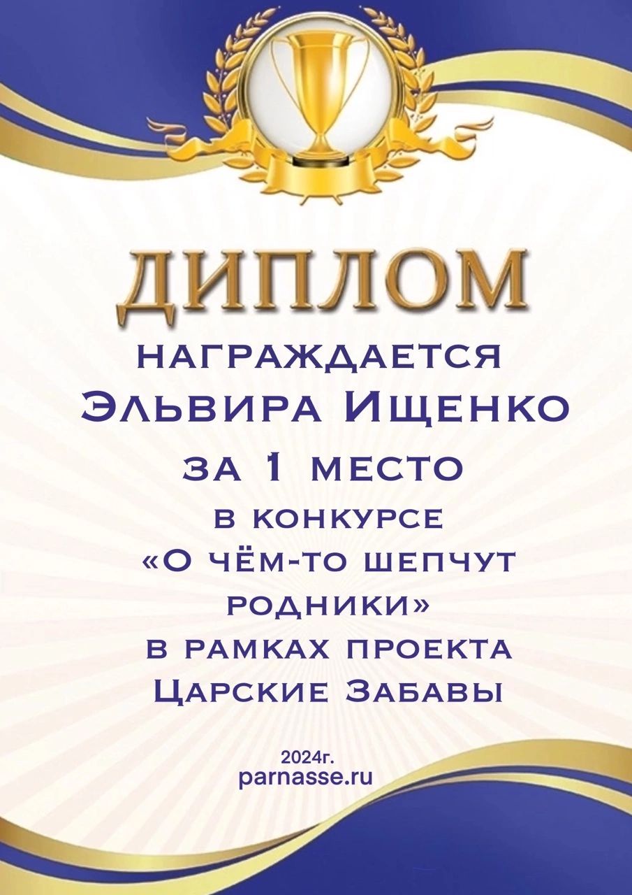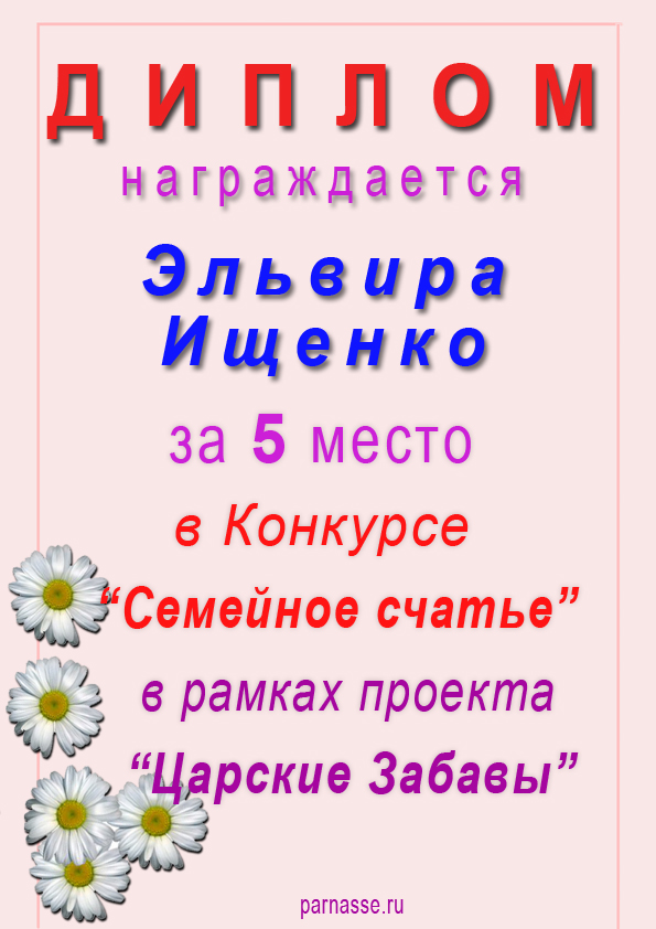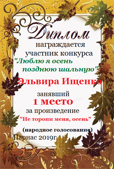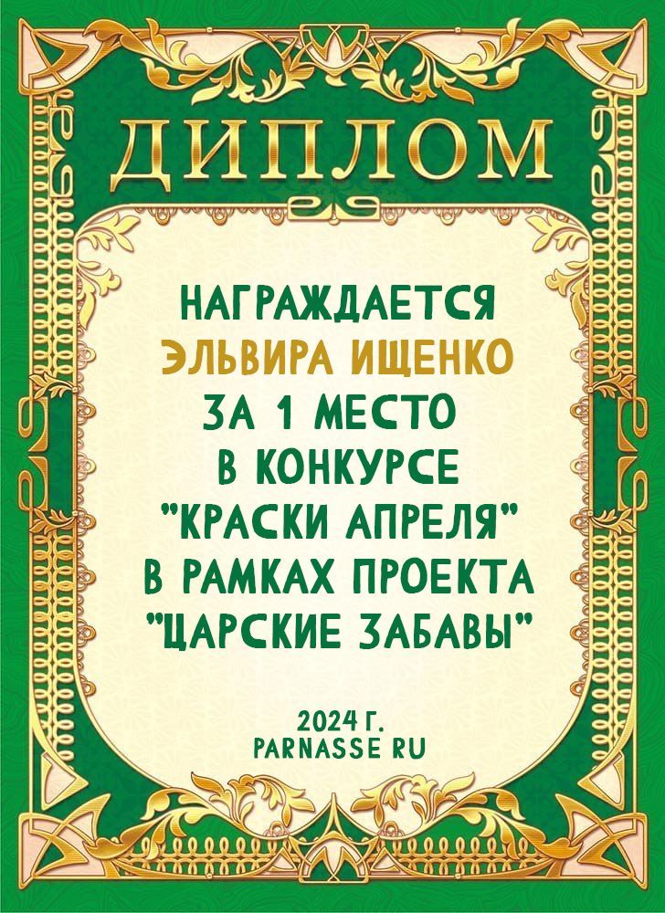 За неугасающую и неисчерпаемую творческую активность, постоянный контакт с Музой и признание сообществом "Парнасцев".От всей души желаем Вам, Эльвира, здоровья, любви, успехов, благополучия, удачи и творческого вдохновения!