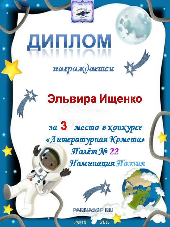 Поздравляю с занятым 3 местом в конкурсе "ЛитКомета-Полёт № 71" - Номинация Поэзия!