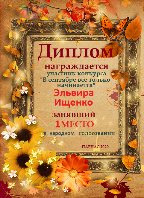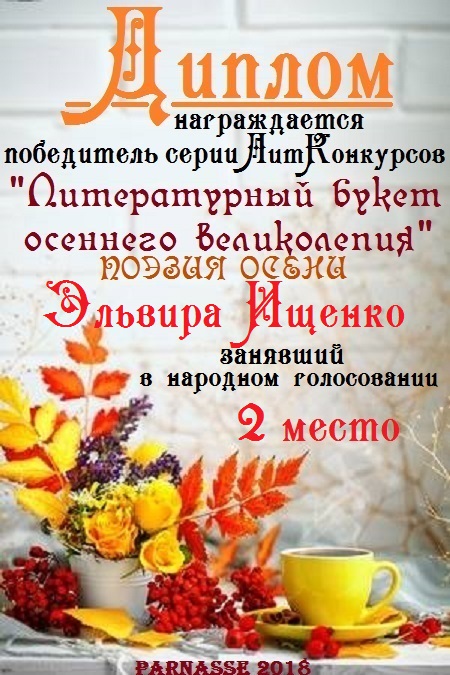 Поздравляем с занятым 2 местом в ЛИТКОНКУРСе «Золотом рассыпался сентябрь.,,», номинация – Поэзия (народное голосование)!