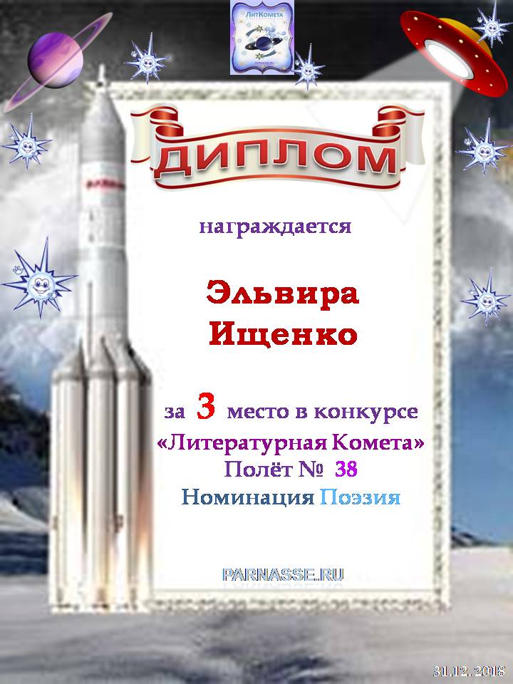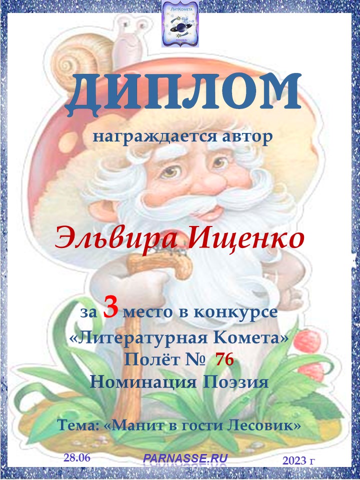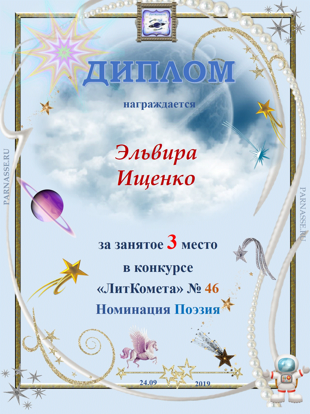 Поздравляю с занятым 3 местом в конкурсе «Литературная Комета – Полёт № 35» - номинация поэзия!