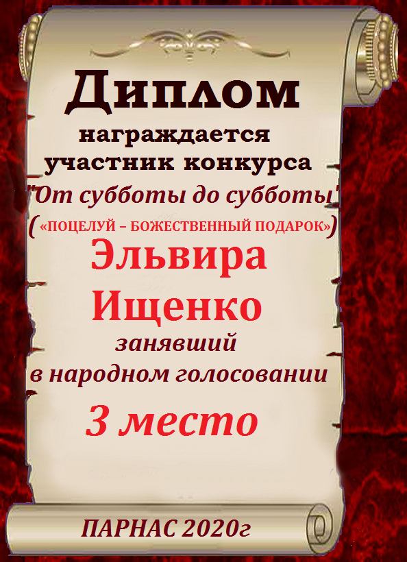 За 3 место в конкурсе"РОМАНС О ВЛЮБЛЁННЫХ"