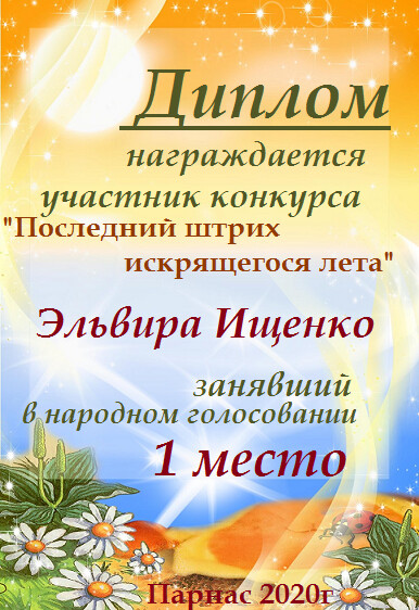 Победителю конкурса: "Под жарким взглядом летней музы". Поздравляем с 3 местом в номинации - "Стихи о лете"