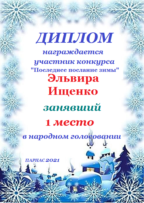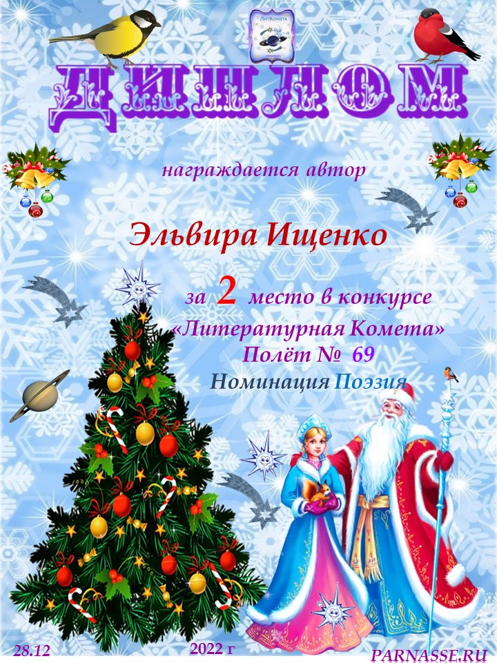 Поздравляю с победой - 2 местом в номинации Поэзия! Желаю счастья, благополучия и здоровья в наступающем году!
