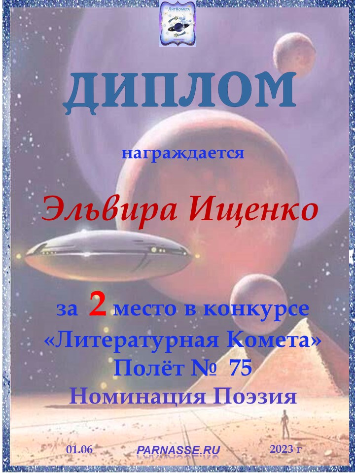 Поздравляю с занятым 2 местом в конкурсе "ЛитКомета - Полёт № 75" - Номинация Поэзия!