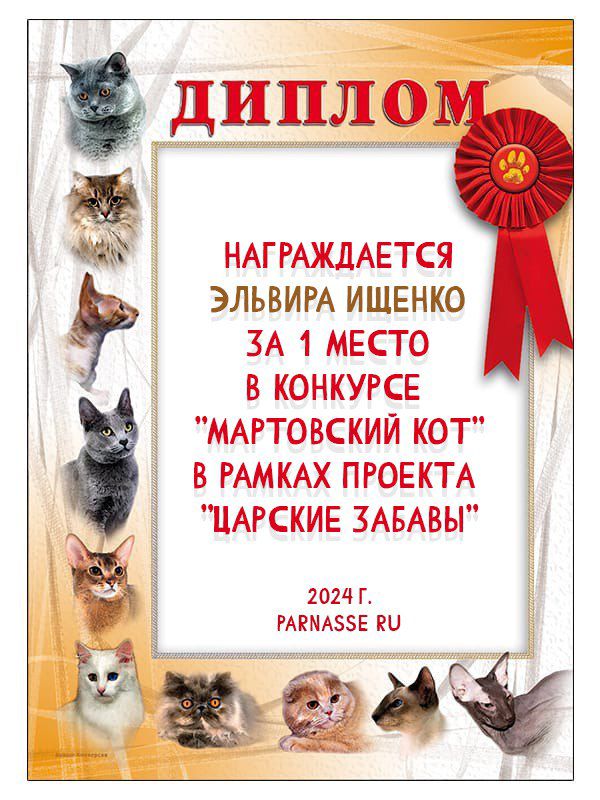 Поздравляю с занятым 1 местом в конкурсе «Литературная Комета – Полёт № 34» - номинация поэзия!