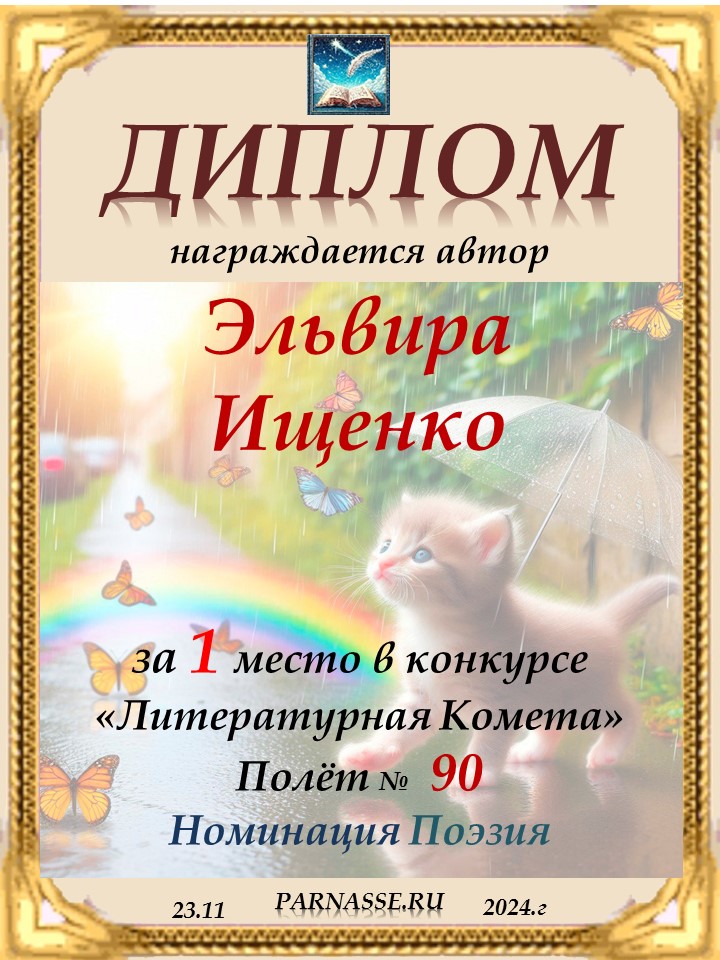 Поздравляю с 1 местом в конкурсе "ЛитКомета" Полёт № 28 - номинация Поэзия!