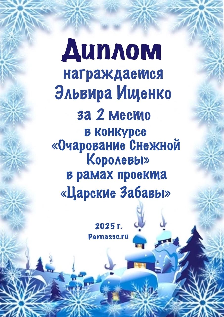 2 место в конкурсе "Очарование Снежной Королевы". Поздравляем!