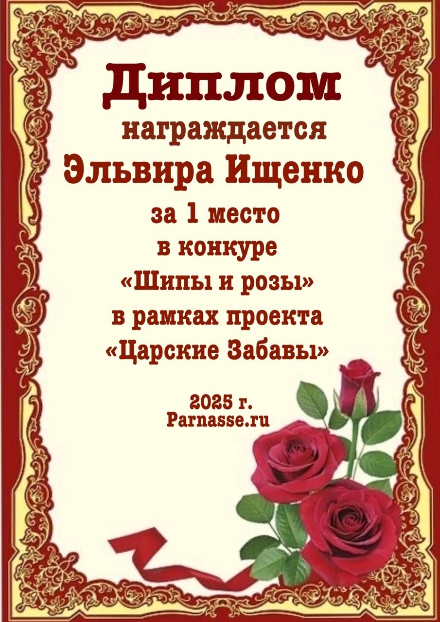1 место в конкурсе "Шипы и розы". Поздравляем!