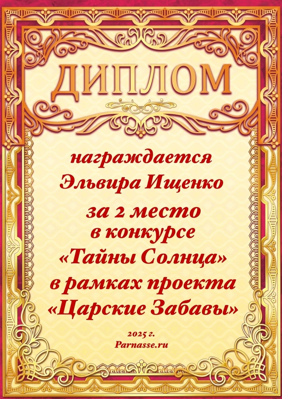2 место в конкурсе "Тайны Солнца". Поздравляем!