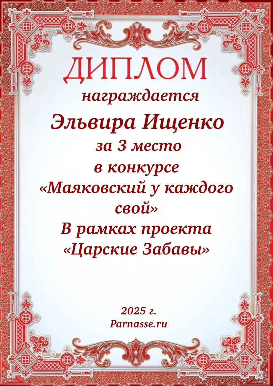 3 место в конкурсе "Маяковский у каждого свой". Поздравляем!