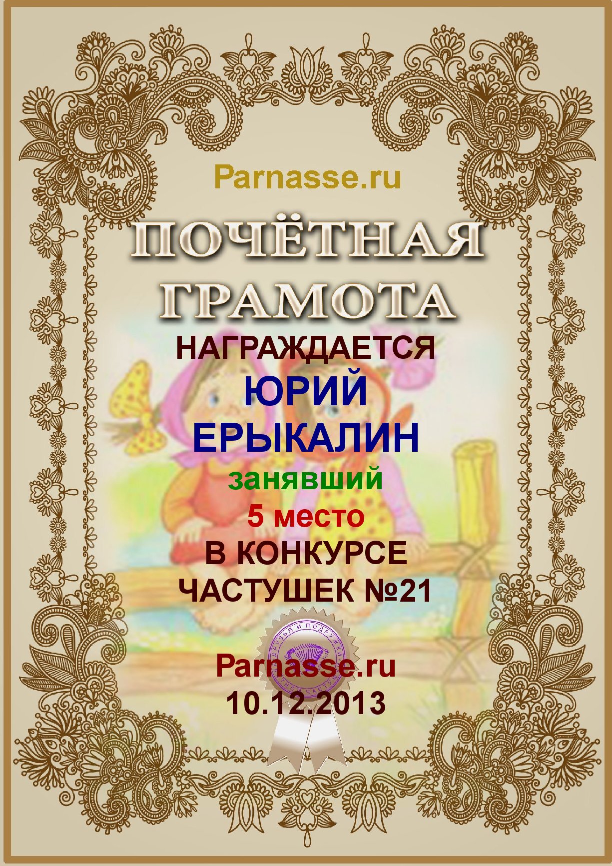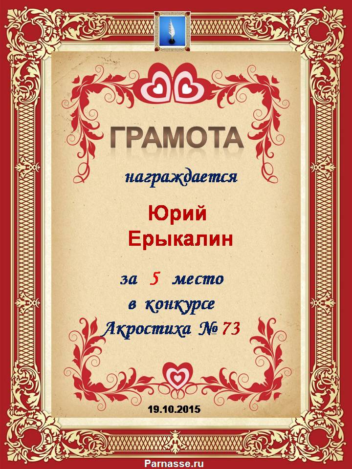 Грамота за 5 место во 2 годовом конкурсе Акростиха по итогам судейского голосования! ПОЗДРАВЛЯЮ!