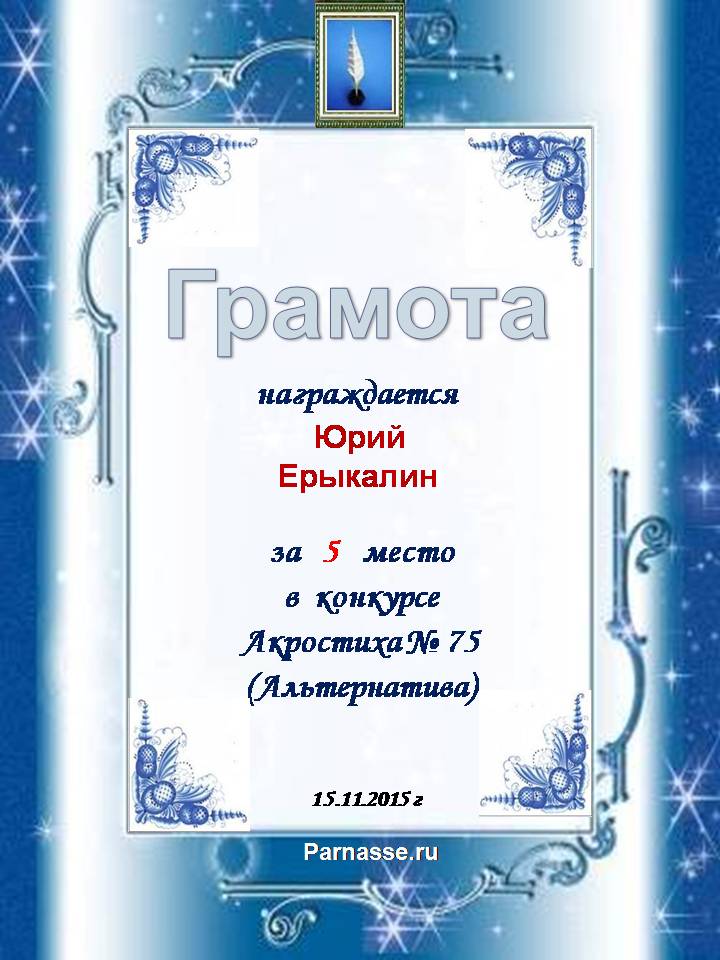 Грамота за 5 место во 2 годовом Альтернативном итоговом конкурсе АКРОСТИХА! ПОЗДРАВЛЯЮ!
