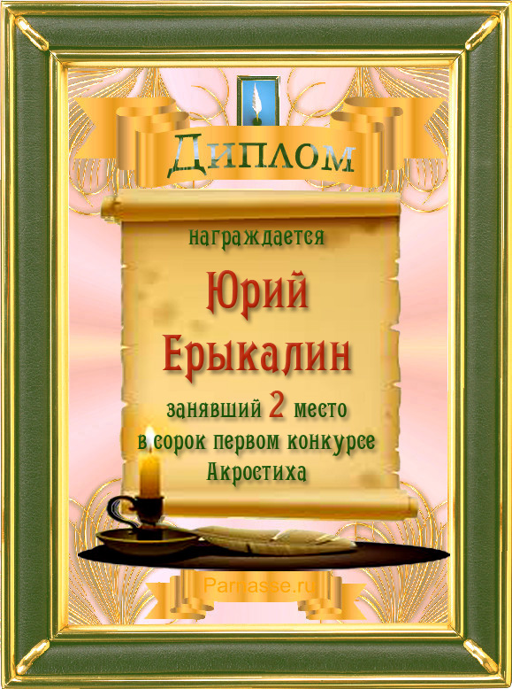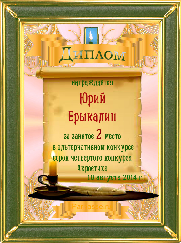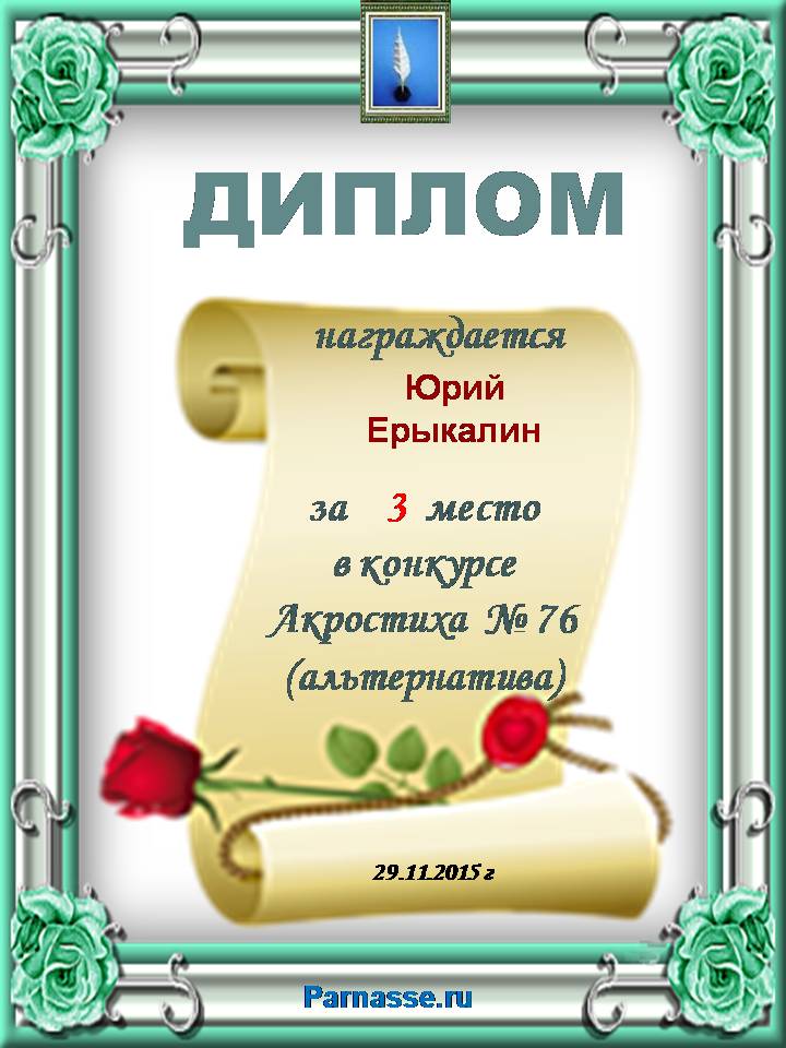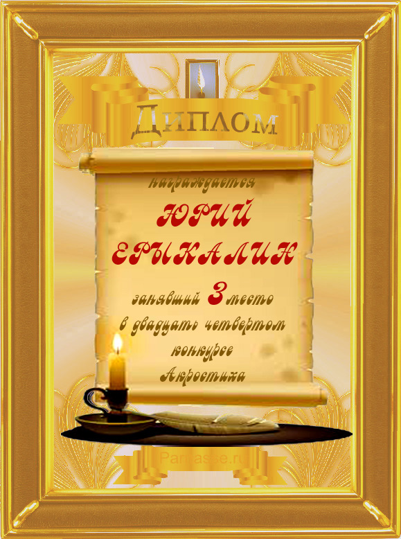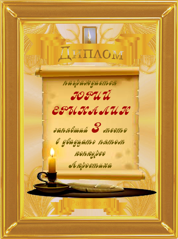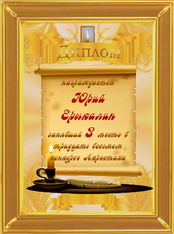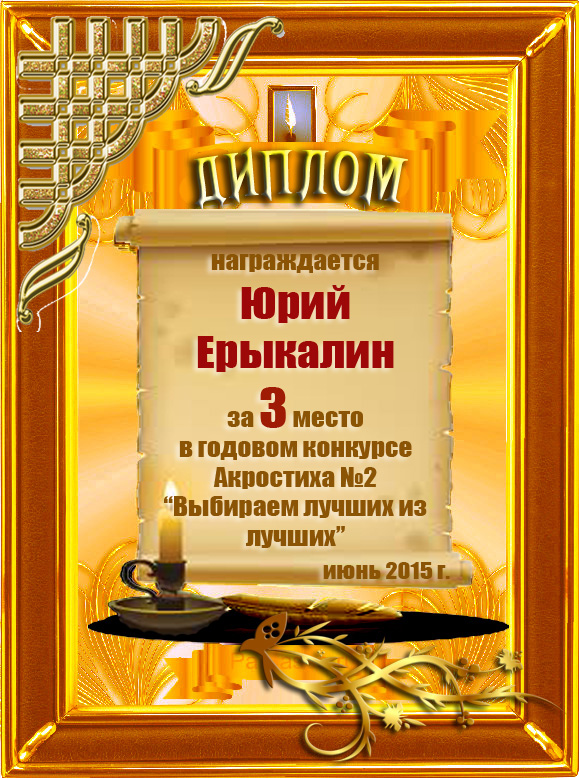 Диплом за 3 место во 2 годовом конкурсе Акростиха по итогам судейского голосования (Альтернатива)! ПОЗДРАВЛЯЮ!