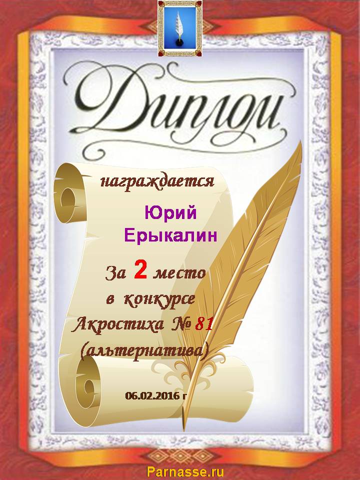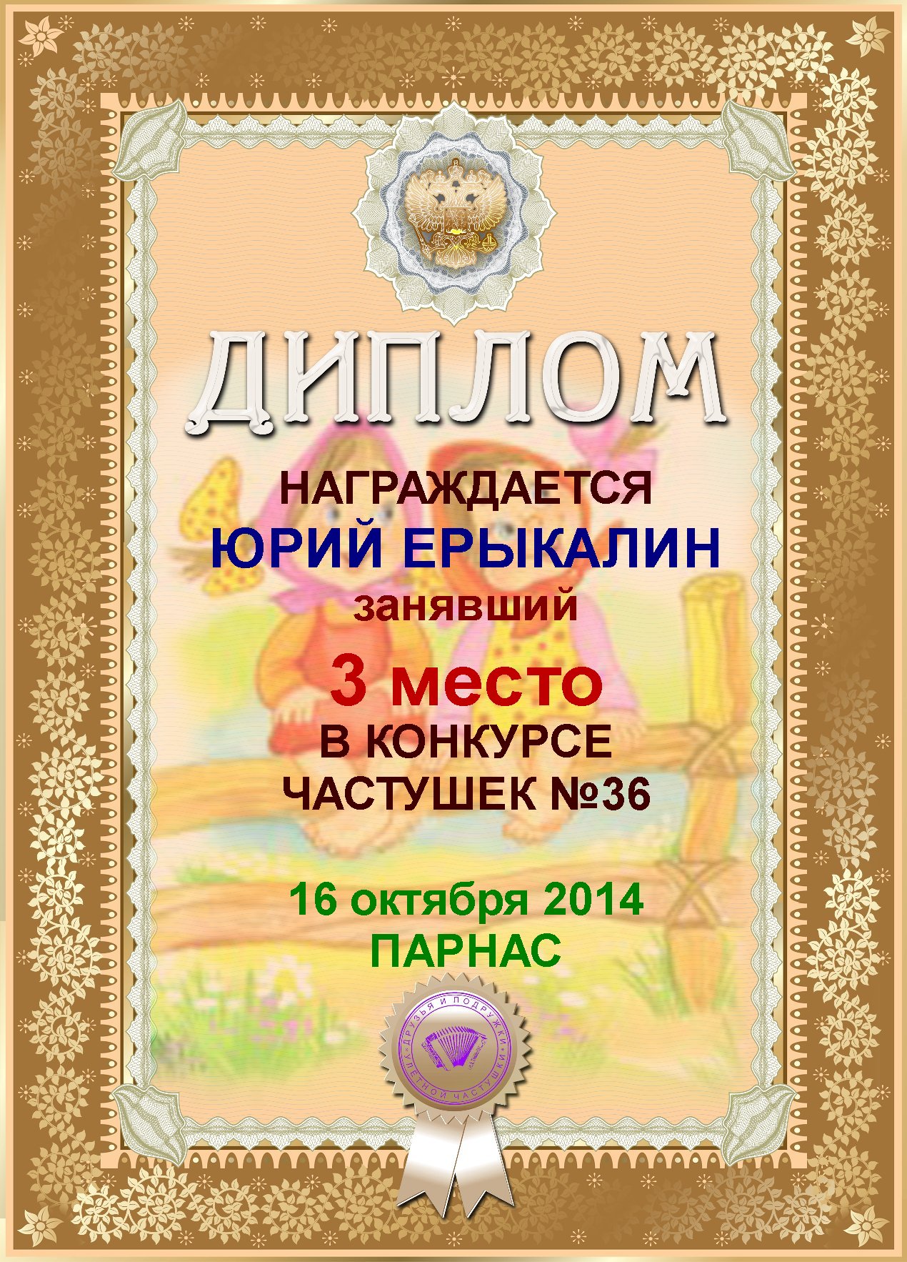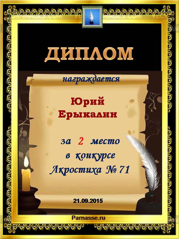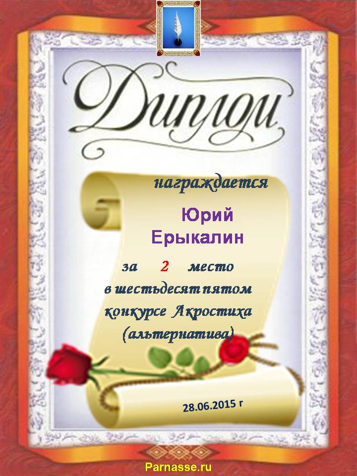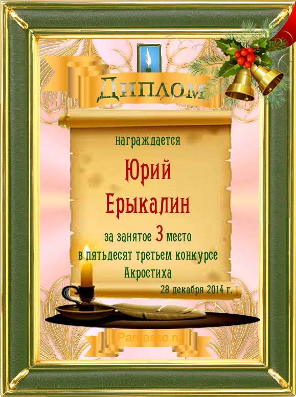 Диплом за 3 место во 2 годовом конкурсе Акростиха по итогам судейского голосования (Альтернатива)! ПОЗДРАВЛЯЮ!